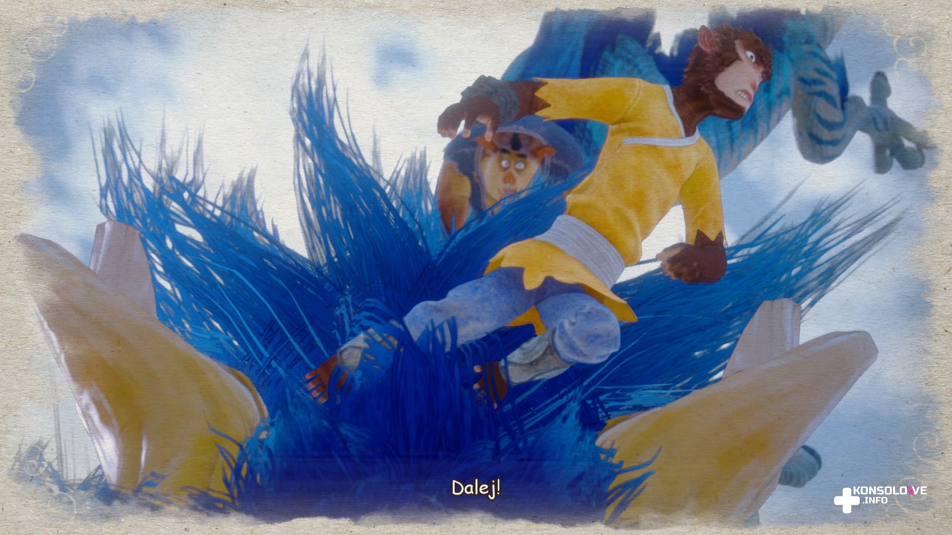 Muszę też pochwalić Monkey King: Hero is Back za oprawę audiowizualną. Ogromnym plusem produkcji jest jej pełna polska lokalizacja. Dzięki temu możemy cieszyć się profesjonalnym polskim dubbingiem, co potęguje wrażenie obcowania z interaktywnym filmem animowanym. W rolę Dashenga wciela się ikona dubbingu, Jarosław Boberek. Nie powinno więc dziwić, że jego postać jest przekonywująca. Ogromnie spodobała mi się także muzyka. Często włączałem pauzę tylko po to, aby posłuchać kompozycji przygotowanych na potrzeby gry. Za plus uznaję tez grafikę w Monkey King. Co prawda tekstury nierzadko mogłyby skorzystać z materiałów o wyższej rozdzielczości, nie brakuje tez miejsc pozbawionych wygładzania krawędzi, ale w ogólnym rozrachunku strona wizualna jest na przyzwoitym poziomie. Na tyle dobrym, że idealnie współgra on z ogólną wizją świata.