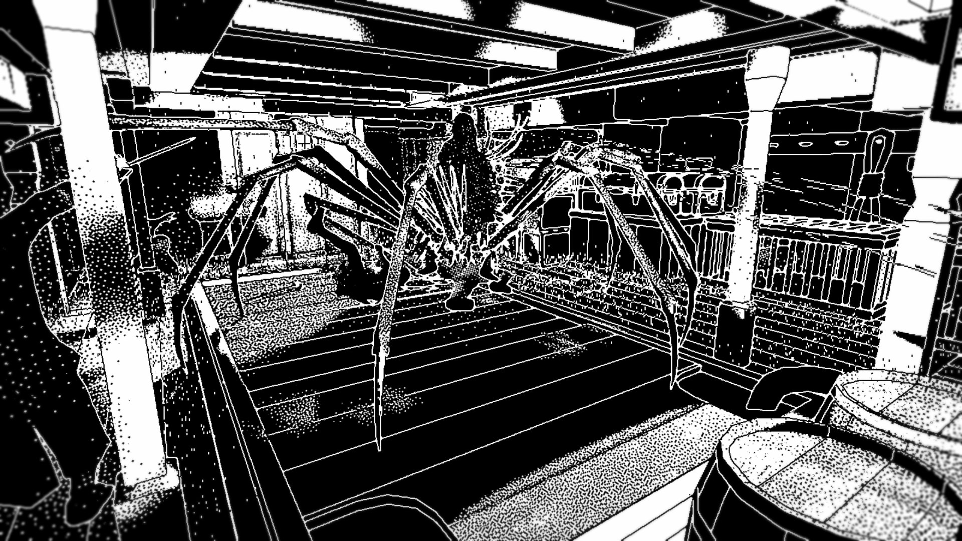 Co rzuca się w oczy oprócz ciał, to “grafika”. Dwa kolory. Tylko. Choć możemy wybrać, w której palecie barw chcemy się bawić. Jak zobaczycie na screenach, nie umiałam się zdecydować. Gdzieś bliżej połowy gry włączyłam czarno-biały zestaw i na nim zostałam – chyba najmniej mnie rozpraszał.