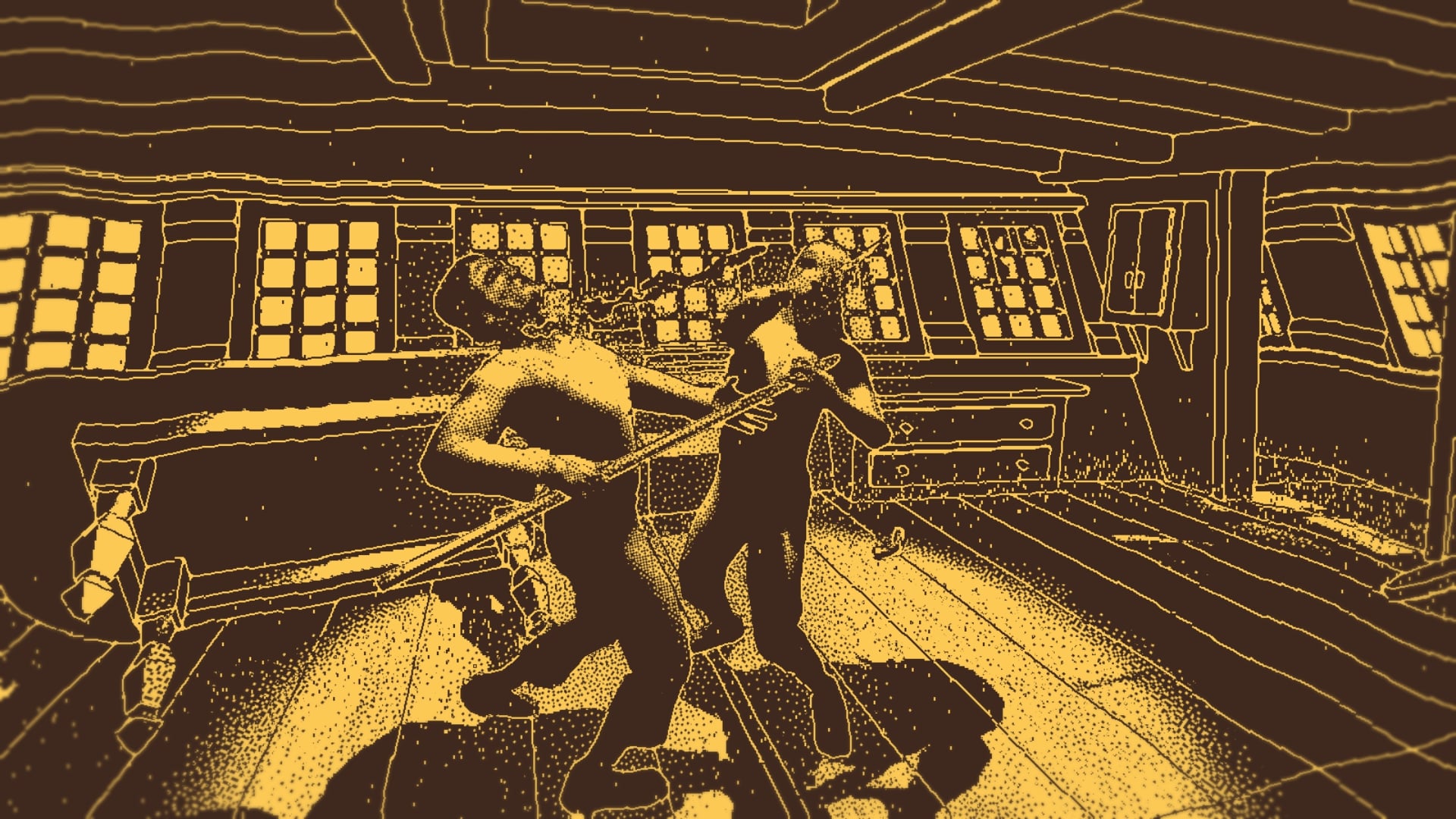 Każda ze śmierci, z tych rozgryzionych, to mnóstwo satysfakcji. Szczególnie, gdy gdzieś dojdziemy faktycznie drogą dedukcji, a nie ktoś krzyknął “Ej Ziomek (nazwisko), czemu (drugie nazwisko) do Ciebie strzelił?”. Historia jest trochę ponura, sporo w niej obłędu i mało radości – skupiamy się przecież na najtrudniejszych elementach historii Obra Dinn. Widzimy elementy świadczące o tym, że kiedyś tam było dobrze, ale odkąd szaleństwo wzięło górę, pokłady zaczęły spływać krwią.