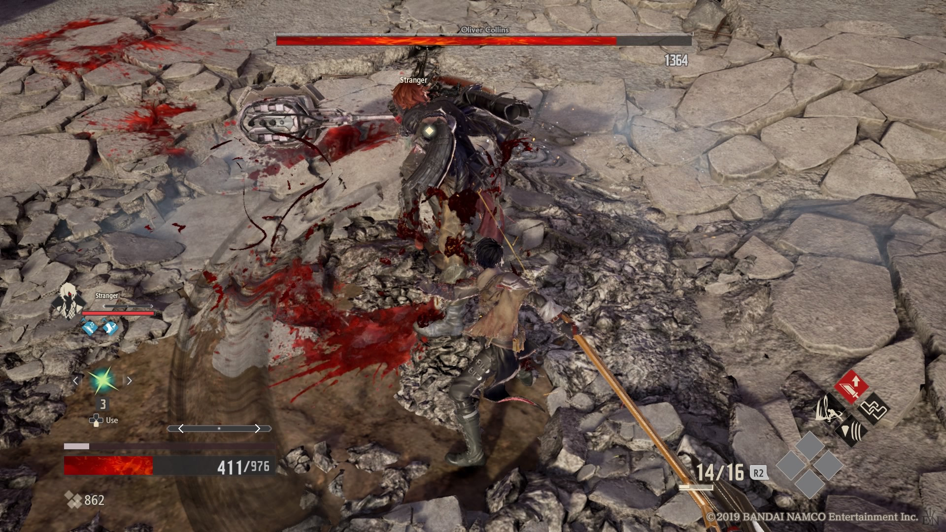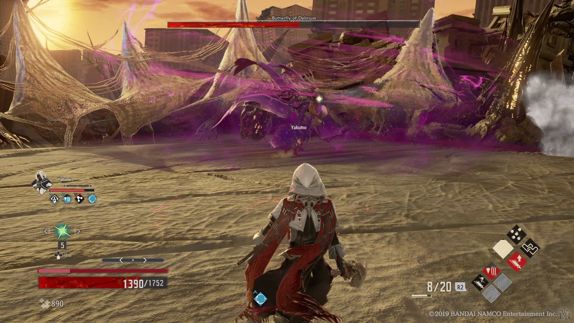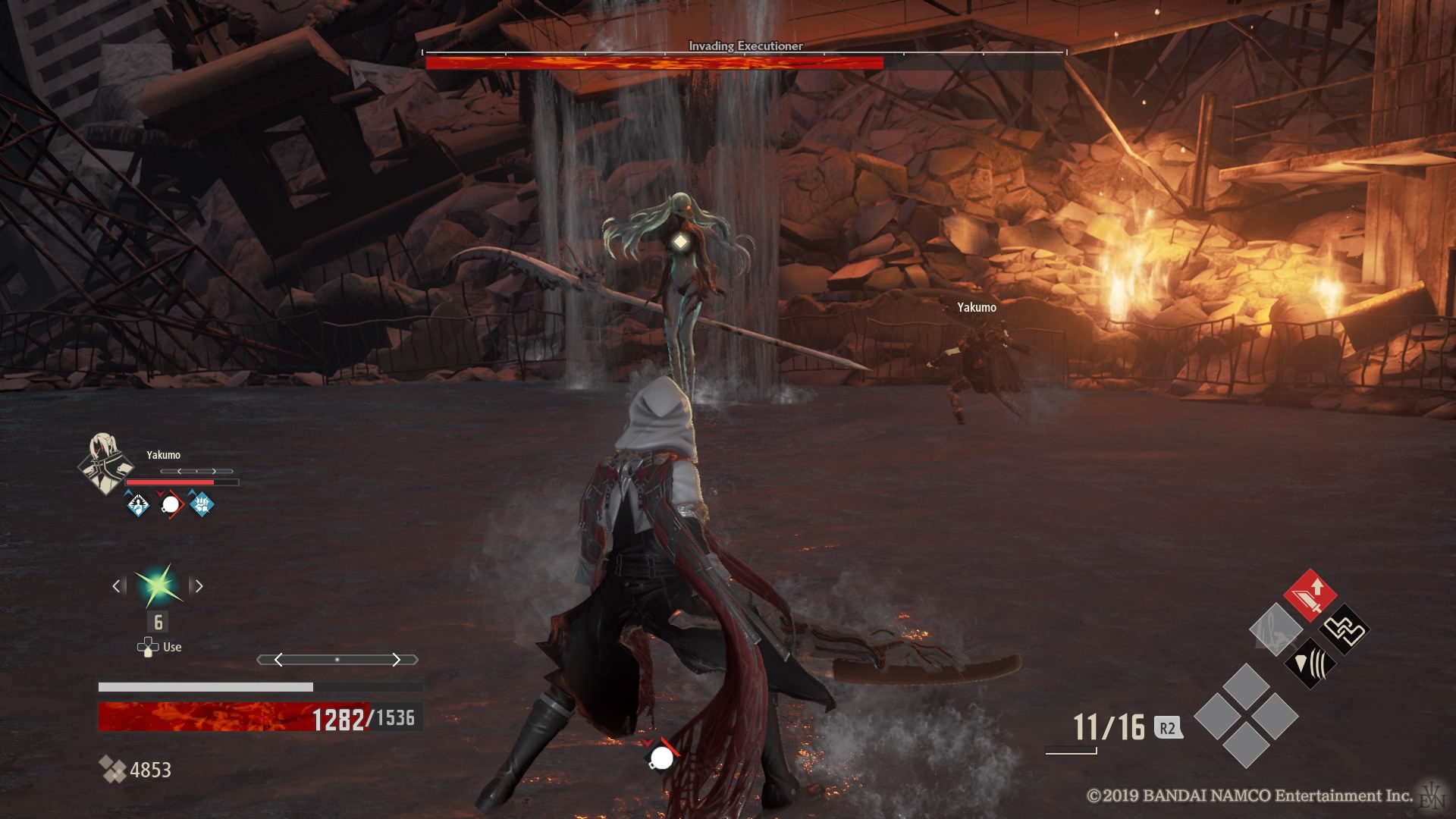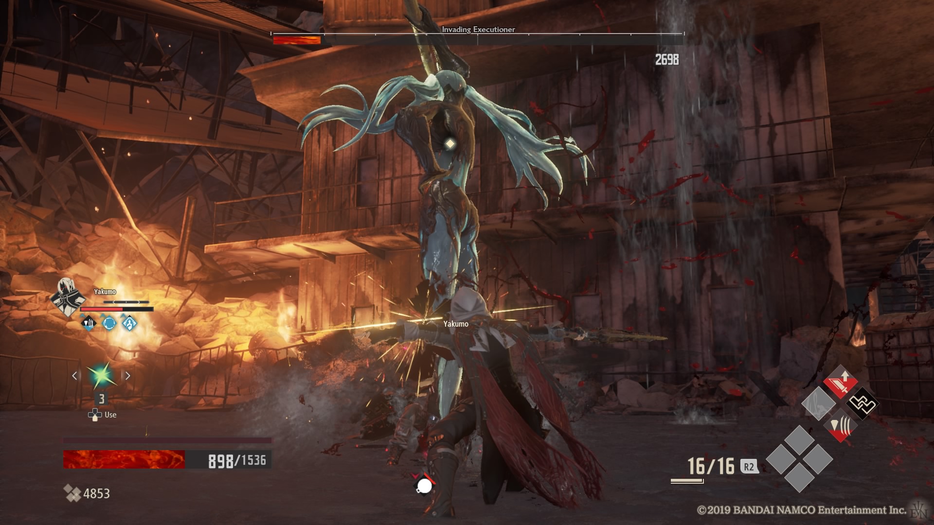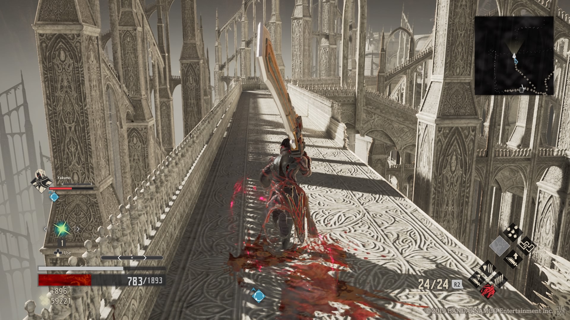 Wspomniałem jednak wcześniej, że tytuł nie odkrywa Ameryki pod względem mechaniki. W dużej mierze otrzymujemy klasyczną szkołę Dark Sous – atak silny i słaby oraz przewrót (którego będziemy używać nader często). Dorzucimy do tego sporą masę sprzętu do wyrządzania krzywdy przeciwnikom oraz sporą część odzienia, które mają za zadanie nas chronić i otrzymujemy Dark Souls: Anime Edition. Jednak pomimo tego, że wspomniane wyżej systemy zostały bardzo dobrze zaimplementowane w nowym tytule od Namco, to Japończycy pokusili się o drobne dodatki do formuły znanej z dzieł From Software.