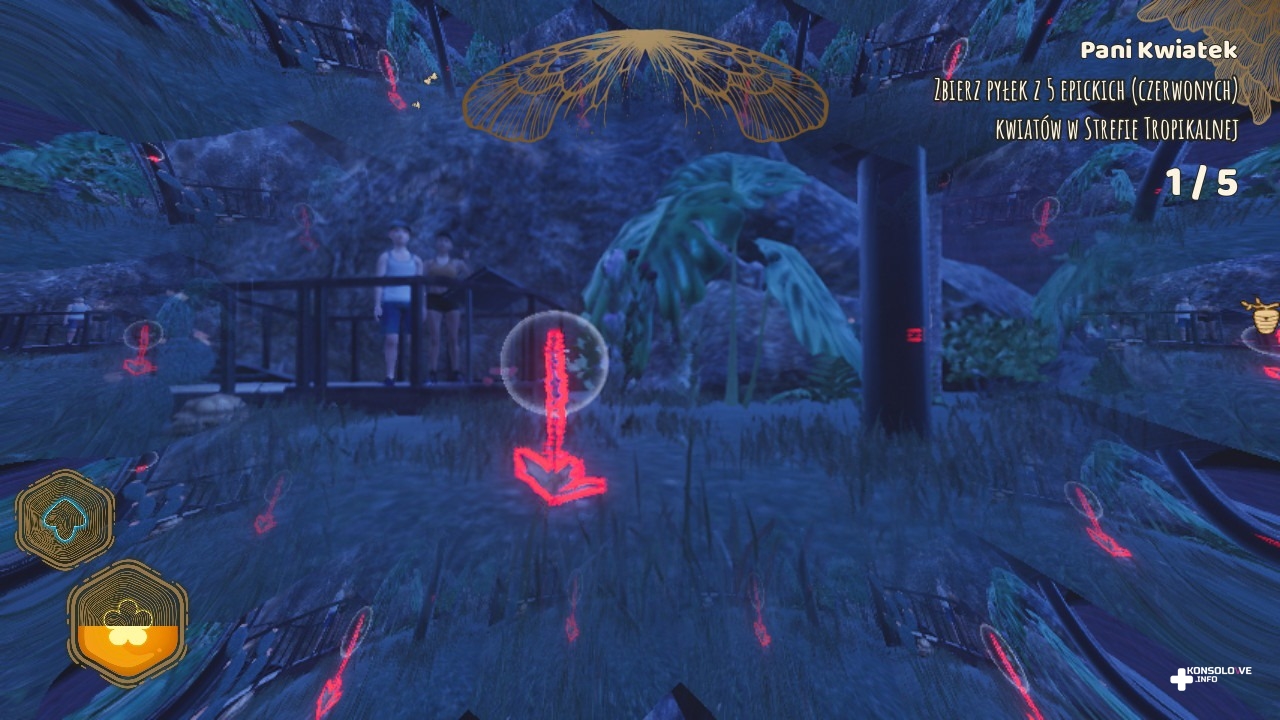 Wyścigi to w moim przekonaniu najgorszy element rozgrywki, jaki występuje w Bee Simulator. Nie chodzi nawet o to, że tempo, w jakim porusza się nasza bohaterka nie jest najwyższe. To jeszcze bym przebolał. Gorzej, że osoba, z którą się ścigamy wyraźnie ma nieograniczone pokłady nitro (czy, jak to nazywa się w recenzowanej produkcji, beetro). Lecąc za pszczołą, sową, czy nawet… robotem… musimy jednocześnie uważać, by wlecieć w zielone okręgi. Jeśli ominiemy ich za dużo, przegramy. Jeśli będziemy za daleko od celu – przegramy. Wyścigi są przesadnie trudne i były jedynym rodzajem aktywności, który z premedytacją pomijałem, widząc dostępne wyzwania, a w misjach fabularnych robiłem przerwę od gry, aby nastawić się psychicznie na wyścig. To zdecydowanie nie jest element, z którego w moim przekonaniu programiści z Varsav Game Studios powinni być dumni.