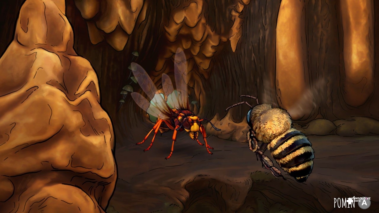 Bee Simulator bez wątpienia nie jest długą grą. Mamy do wykonania zaledwie 10 misji głównych, co nie powinno zająć więcej niż 2 – 3 godziny. Oprócz nich mamy jednak wiele wyzwań zadań pobocznych, więc miłośnicy pszczelarstwa z pewnością spędzą z grą więcej czasu. Zadania, jak już wcześniej wspomniałem, dzielą się na kilka kategorii. Oprócz zbierania pyłków (co możemy sobie nieco ułatwić, włączając specjalny tryb widzenia pszczoły) mamy między innymi walkę. Moja B. B. King musiała nieraz zmierzyć się z szerszeniem, czy osą. Starcia są bardzo proste. Na ekranie widzimy wskaźnik zdrowia naszej pszczoły oraz oponenta. Co pewien czas na dole ekranu pojawia się pasek z widocznymi oznaczeniami X oraz Y. Musimy nacisnąć te przyciski w odpowiedniej kolejności i z właściwym tempem, a nasza pszczoła albo zablokuje atak, albo wyprowadzi własny. Starcia są bardzo proste, ale muszę przyznać, że mimo tego lubiłem brać udział w walkach w Bee Simulator. Odprężałem się przy nich. Na pewno były dla mnie o wiele lepsze niż wyścigi.