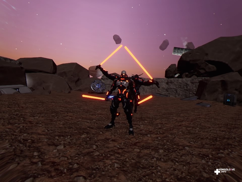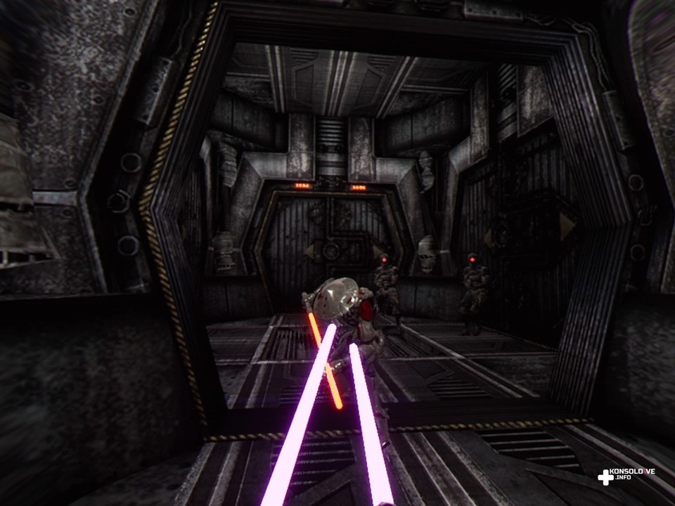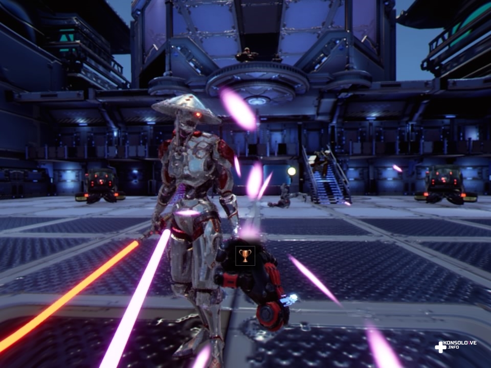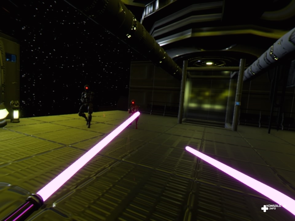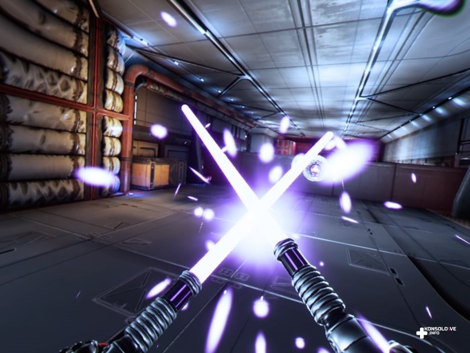 Nasza postać jest bowiem wyposażona w dwa rodzaje broni. Jednym z nich jest futurystyczny pistolet, zadający co prawda niewielkie obrażenia, ale wynagradzający to zasięgiem. O wiele ciekawsze są miecze świetlne – naciskając kwadrat na kontrolerach PlayStation Move, przełączamy się między wspomnianymi typami broni. Dzięki temu możemy mieć w obu rękach pistolety lub miecze świetlne, ale i kombinacje – lewą rękę wyposażoną w miecz świetlny i prawą w pistolet albo na odwrót. Możemy też korzystać z mocy przyciągania przeciwników (naciskając O), dzięki czemu możemy chwycić wroga i cisnąć nim, zabijając tym samym.