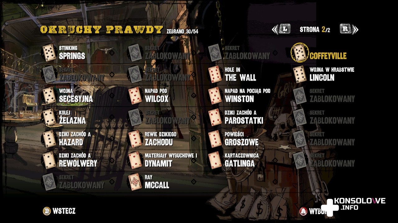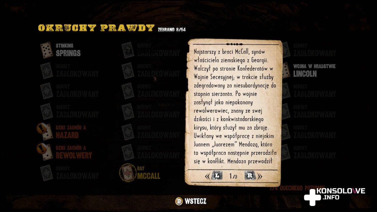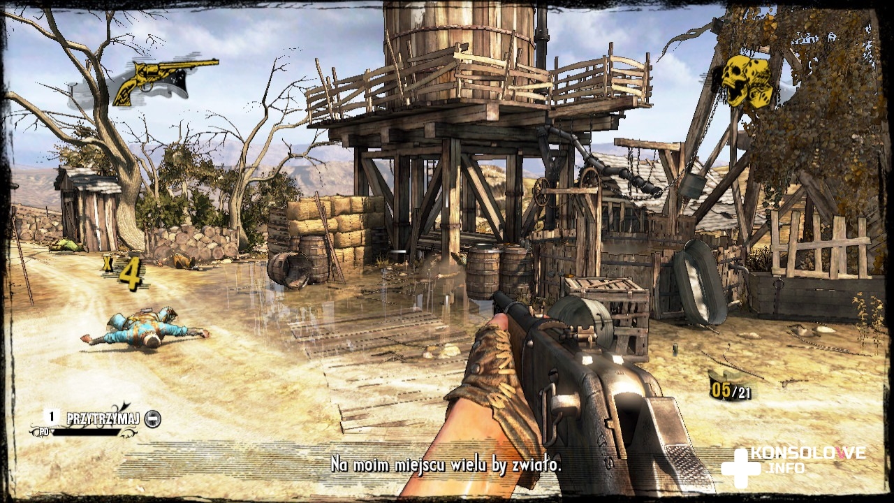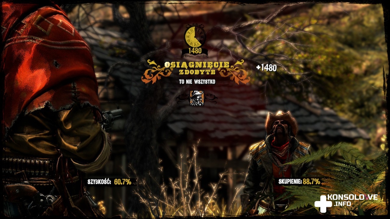 Pamiętacie grę Bulletstorm i zawarte w niej skill shoty? Jeśli tak, to grając w Call of Juarez: Gunslinger poczujecie się jak w domu. Podobnie jak w produkcji People Can Fly, tak i w dziele Techlandu za zabójstwa dostajemy punkty i odznaczenia. Miedzy oczy, Na wylot, Sokole oko, Błyskawicznie – to tylko niektóre z określeń, jakimi będą opisywane nasze zabójstwa. Towarzyszą im wartości liczbowe, zwiększające nasz poziom doświadczenia. Wpływają na niego również odnajdywane w świecie gry Okruchy Prawdy – znajdźki, pogłębiające naszą wiedzę na temat historii Dzikiego Zachodu. Nierzadko są to fragmenty gazet o dość humorystycznej treści, a więc odnalezienie ich stanowi nagrodę samą w sobie.