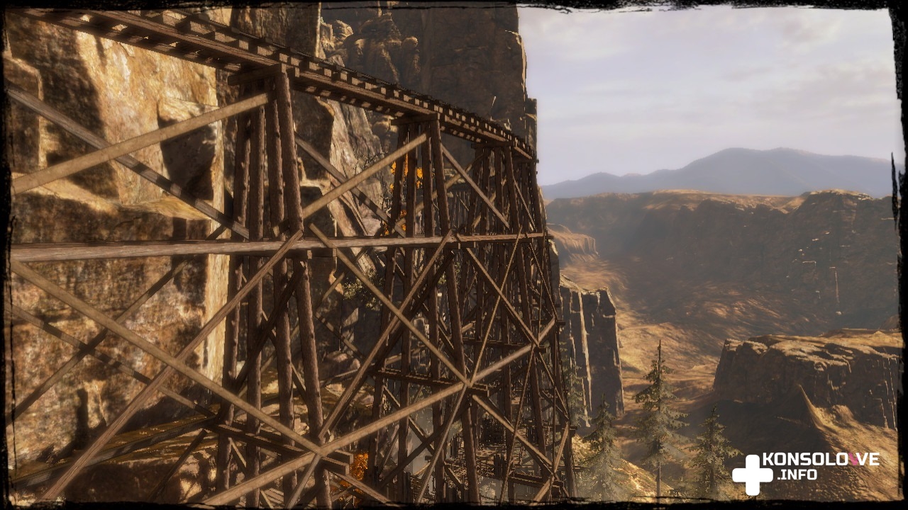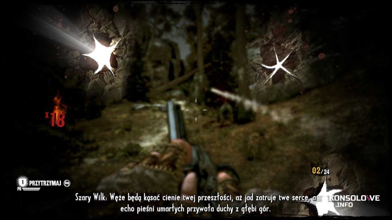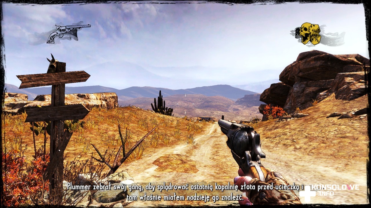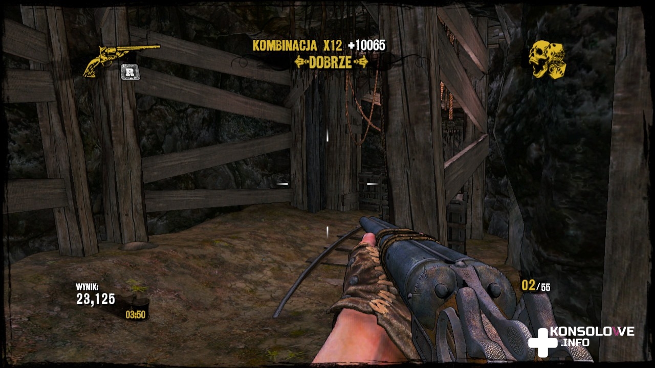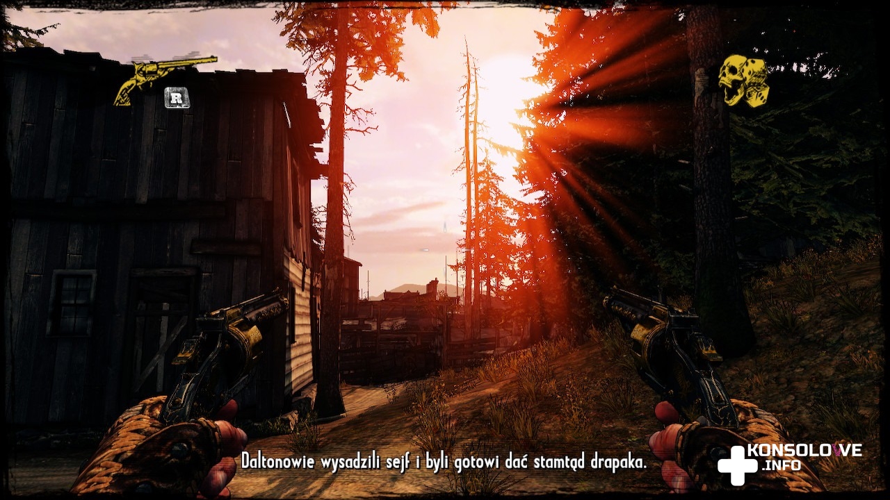 Tak z grubsza wygląda zarys fabularny Call of Juarez: Gunslinger . Godziny mijają niesamowicie szybko – ogromna w tym zasługa charyzmatycznego głównego bohatera, ale i tego, że to on opowiada historię. Nasz rozmówca wie o niektórych potyczkach Greavesa z książki, ale prawda wydaje się być zupełnie inna, o czym bardzo chętnie powie mu nasz łowca. Oczywiście prawda musi wyglądać tak, jak widział ją Silas, aby postawić się w jak najlepszym świetle. Aby mu się to udało, nierzadko będzie przeinaczał fakty i koloryzował, ale właśnie to jest jedną z największych zalet gry. Nierzadko pójdziemy kawałek i weźmiemy udział w strzelaninach, aby okazało się, że podobno było zupełnie inaczej. Nasza droga zostanie wtedy cofnięta (jak taśma filmowa) i weźmiemy udział w podobnej, ale nieco różniącej się akcji. Na porządku dziennym są wyrastające tuż przed naszymi oczami drzewa lub drabiny, czy tworzące się nowe przejścia w miejscu skalnych przeszkód. Takie zmiany są niesamowicie ciekawym zabiegiem i sprawiają, że produkcja nieustannie nas zaskakuje, przez co nie wiemy nawet kiedy mija wspomniany przeze mnie wcześniej czas.