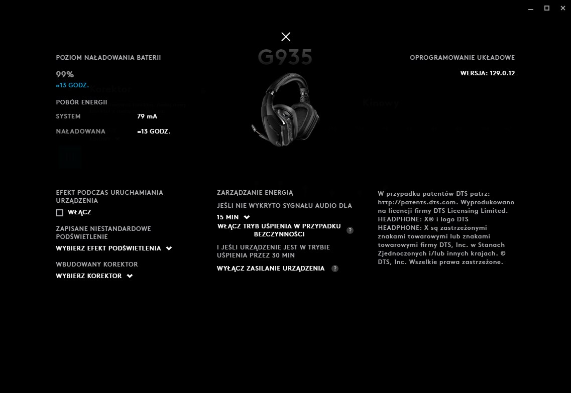 Jednak niech nikogo nie zwiedzie sam wygląd, bo to co na zewnątrz często nie pokrywa się z tym, co znajdziemy w środku. A środek w G935 to kawał zaawansowanej technologi na czele z DTS Headphone: X 2.0 surround sound, który symuluje dźwięk 3D. Różnica względem standardowego dźwięku przestrzennego jest taka, że ten pierwszy kieruje tylko dźwięk do konkretnych kanałów, natomiast DTS:X ma nieorganiczną liczbę kierunków, z których dźwięk się wydobywa.