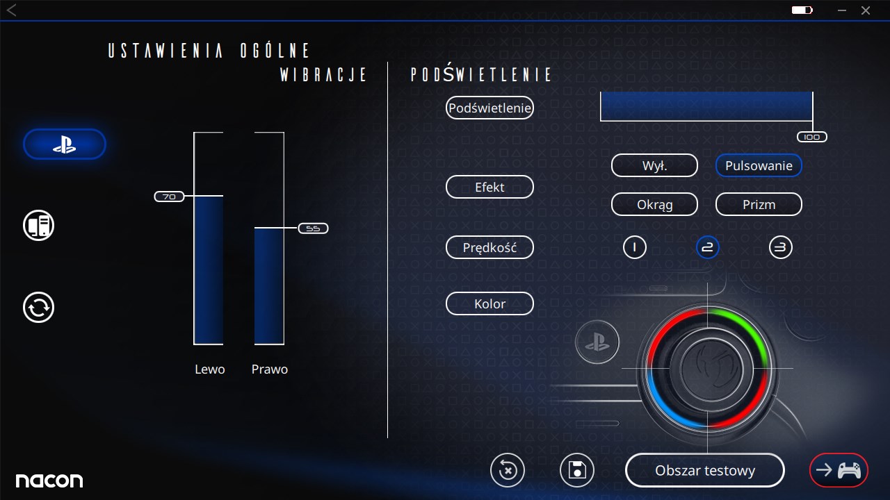 Każde ustawienie możemy przetestować w odpowiedniej zakładce przed wgraniem do kontrolera
