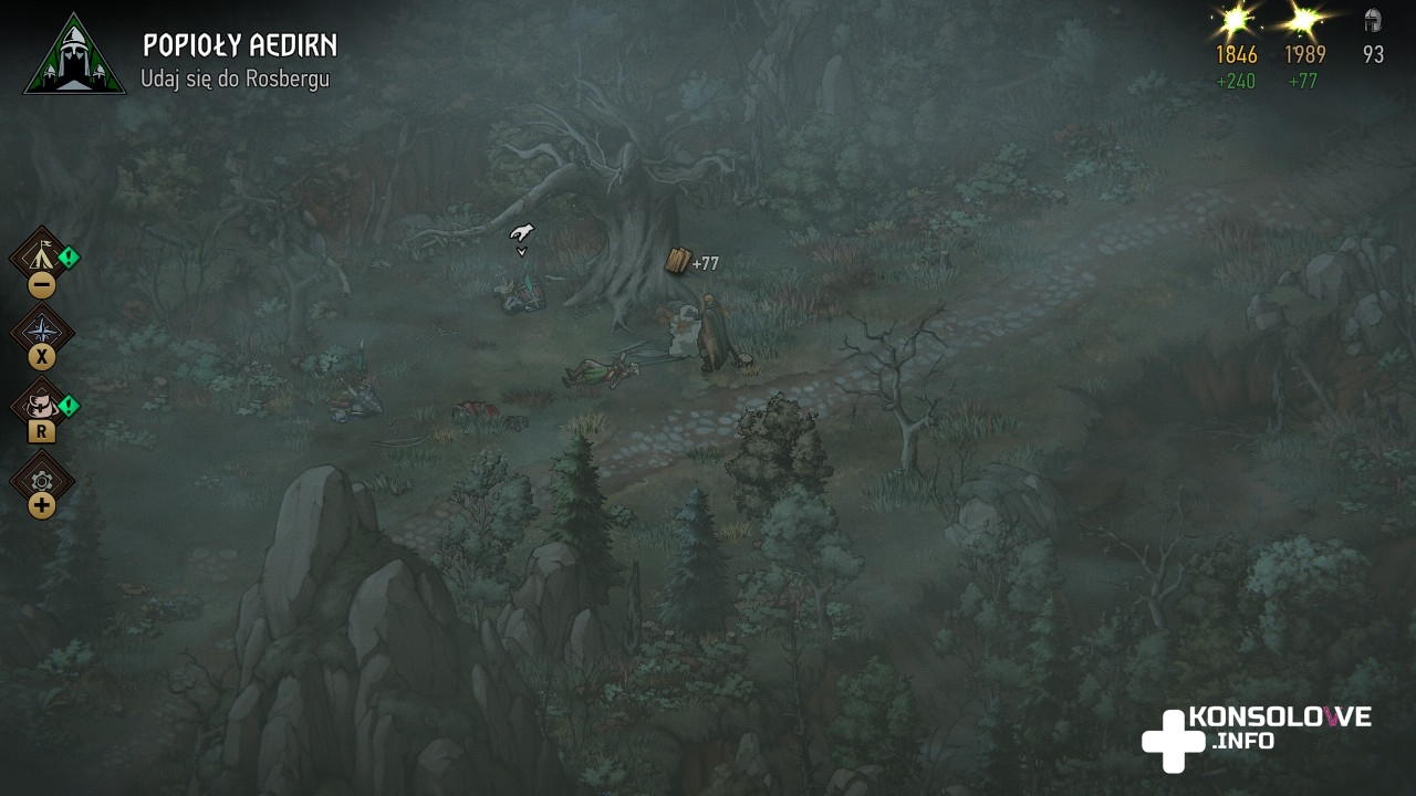 Rozgrywka w Wojnie Krwi: Wiedźmińskich Opowieściach dzieli się na dwa,bardzo różne tryby. W pierwszym z nich przemierzamy świat jako królowa Meve. Twórcy zdecydowali się na izometryczny widok z kamery, co jest na pewno nowością w ich produkcjach z serii o Wiedźminie. Bez wątpienia było to dość ryzykowne podejście, mogące odrzucić niektórych graczy. Ja jednak powitałem je z ogromną radością. Eksploracja skojarzyła mi się z poruszaniem się po średniowiecznej Anglii w klasycznej grze Robin Hood: Legenda z Sherwood. Jednak tu kończą się porównania z tym tytułem. Wiedźmińskie Opowieści w trybie zwiedzania nie są strategią i polegają na odkrywaniu nowych miejsc oraz zbieraniu surowców. Ogromne znaczenie ma bowiem rozwijanie obozu i umiejętności naszej armii, czy tworzenie kart. Nie można też zapomnieć o opcjonalnych spotkaniach, podczas których zadecydujemy o losie ludności, czy wpłyniemy na morale naszych podkomendnych. Jednocześnie należy pochwalić twórców za różnorodność terenów, które będziemy przemierzać. Są bagniste okolice Bindugi, leśne obszary należące do Rivii, czy na przykład skute lodem włości krasnoludów zamieszkujących Mahakam.