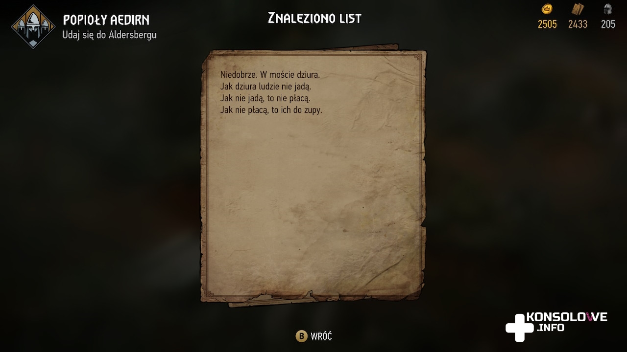 W tej jest mnóstwo subtelnych odwołań do prozy Sapkowskiego. Do naszej drużyny będzie mógł dołączyć, o ile tak postanowimy, rycerz, który próbował zlikwidować Złotego Smoka. Nie jest to wielka informacja dla każdego, ale jeśli czytaliście sagę, na pewno nieraz się uśmiechniecie. Podobnie jak przy okazji czytania odnajdywanych listów, czy rozmów z trollem. Już w poprzednich grach z serii Wiedźmin studio CD Projekt Redudowodniło, że potrafi pisać bardzo dobre, nierzadko humorystyczne teksty. Nie inaczej jest w przypadku recenzowanego tytułu. Dowiemy się, dlaczego Geralt jest zwany Geraltem akurat z Rivii, czy usłyszymy co nieco o Jaskrze oraz o bitwie pod Sodden. Bardzo dobre w tych odwołaniach jest to, że nie są one nachalne. ci z Was, którzy znają opowiadania i sagę o Wiedźminie z pewnością ucieszą się, słysząc znajome nazwy. Jednak jeśli proza Andrzeja Sapkowskiego jest Wam obca, to nic straconego – Wiedźmińskie Opowieści to zamknięta całość, której zrozumienie nie wymaga znajomości całego uniwersum na pamięć i na wyrywki.