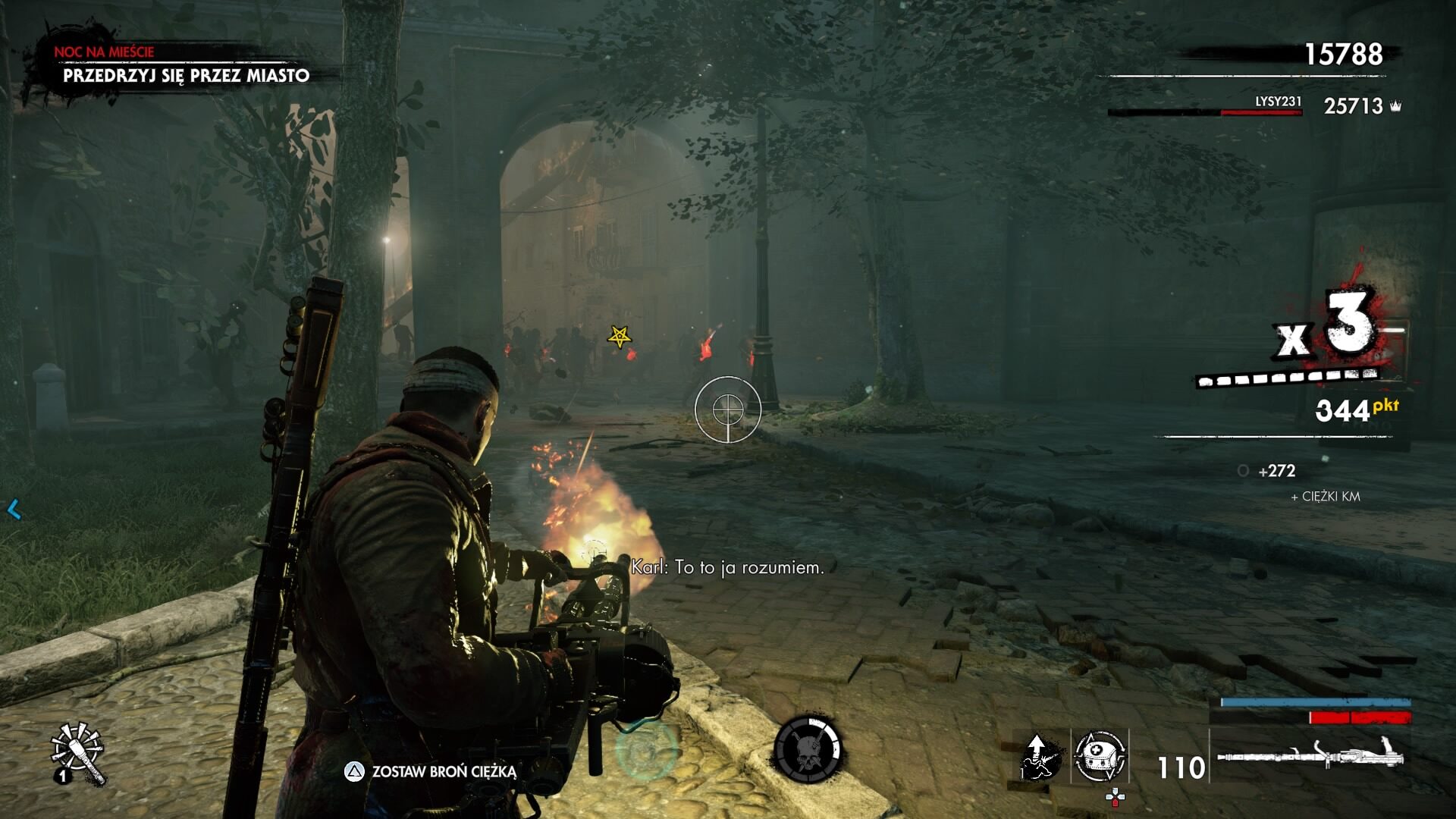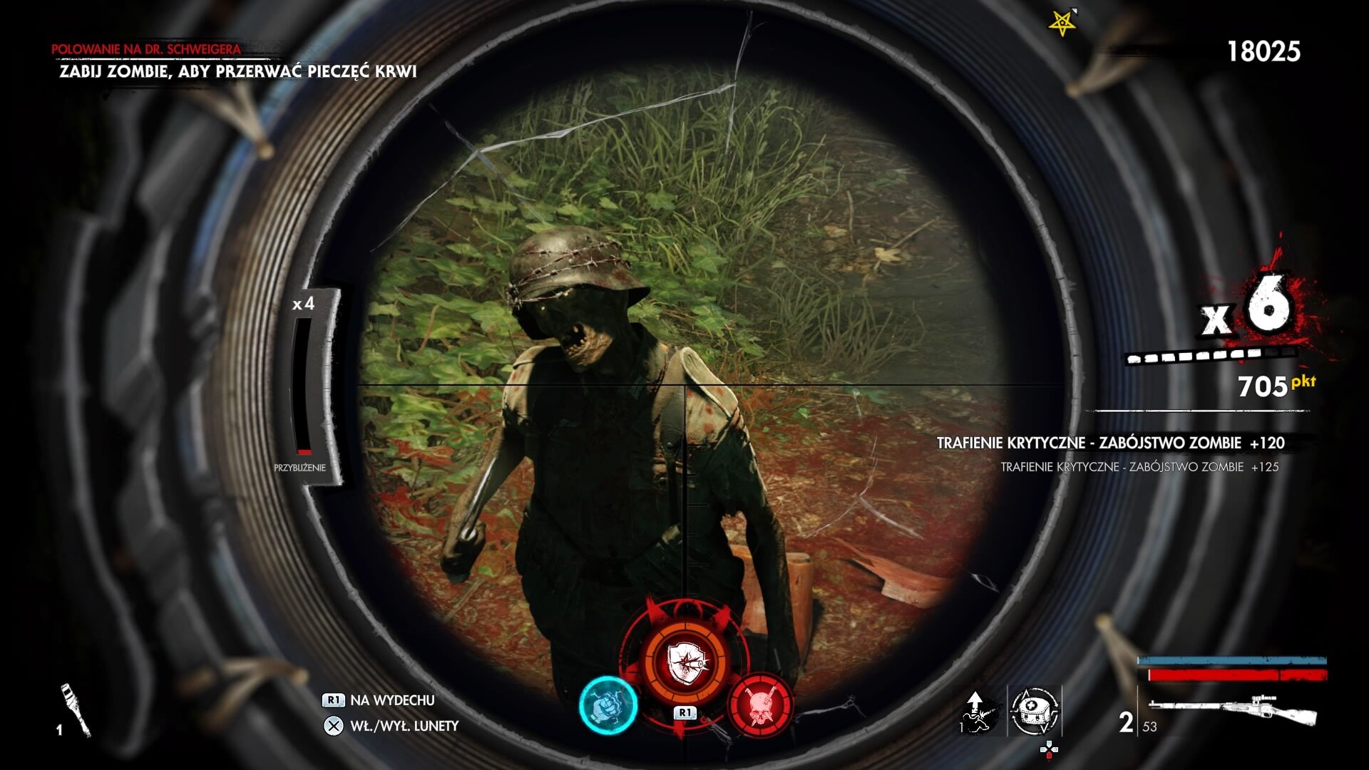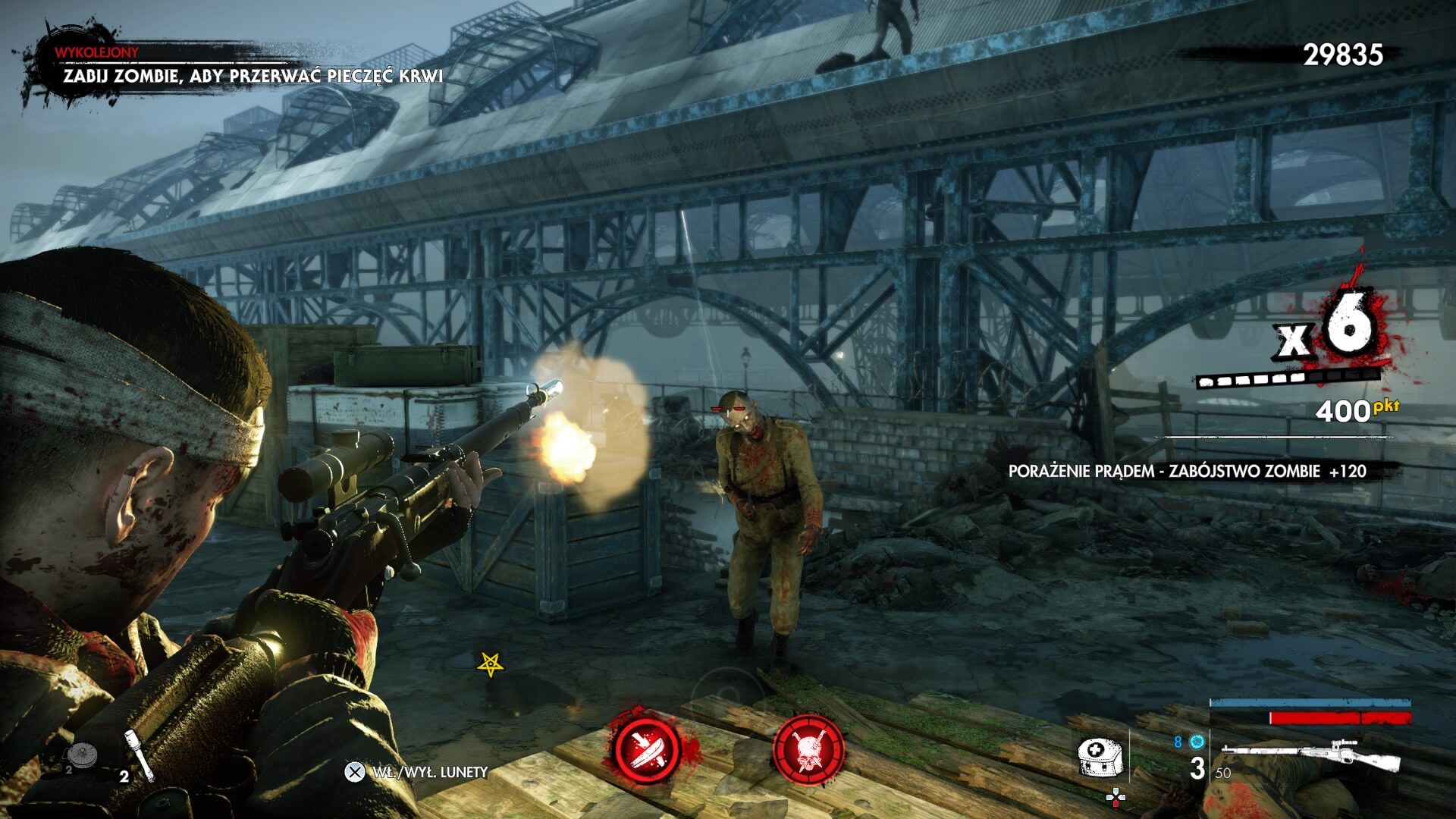 Ogólnie Brytyjczycy uporali się z tym, żeby strzelanie z broni dodatkowych nie było katorgą, jak w lekko już wiekowym Sniper Elite V2, jednak nadal czujemy, że powinniśmy zabijać naszych wrogów z broni dystansowych, co jest nam sugestywnie przypominane, jeśli uda nam się oddać perfekcyjny strzał z daleka i widzimy jak nabój robi spustoszenie w ciałach truposzy.