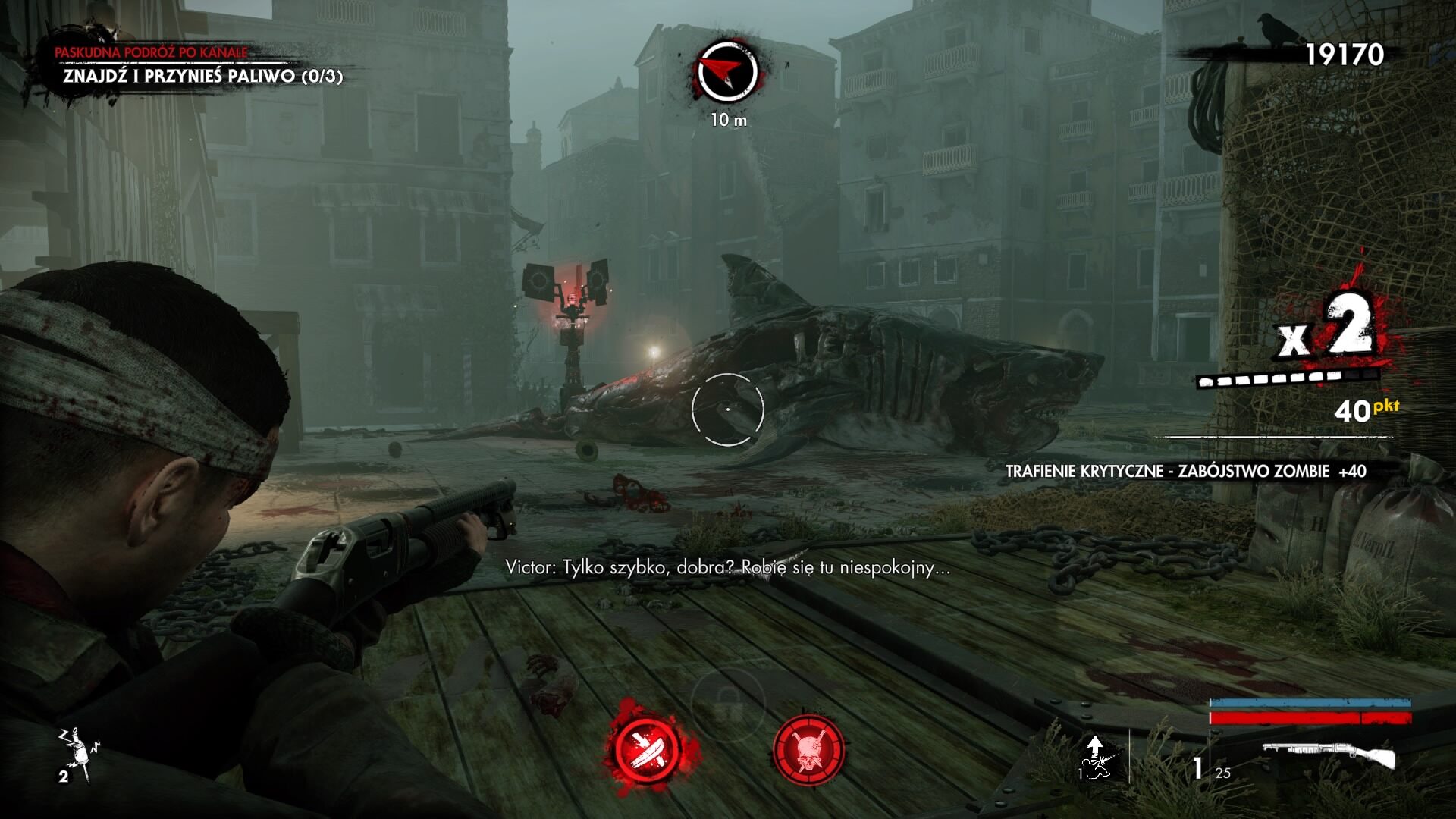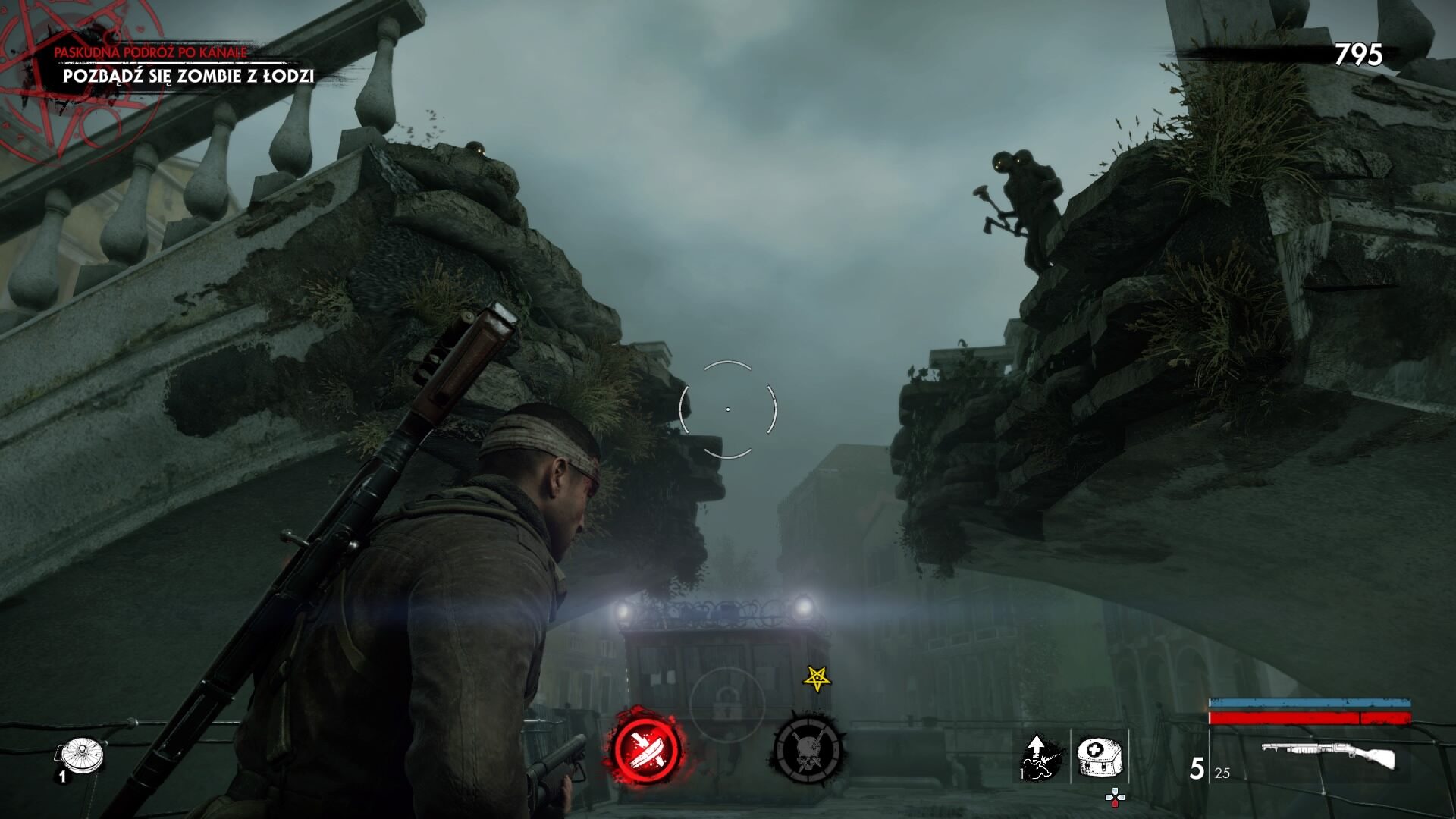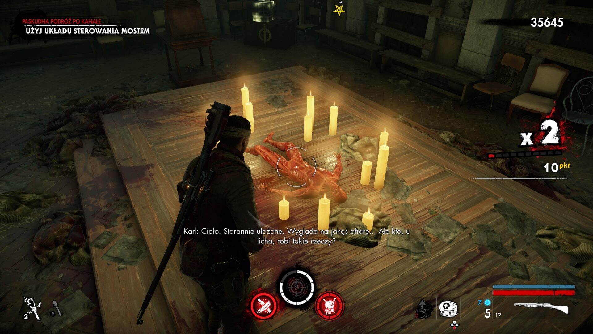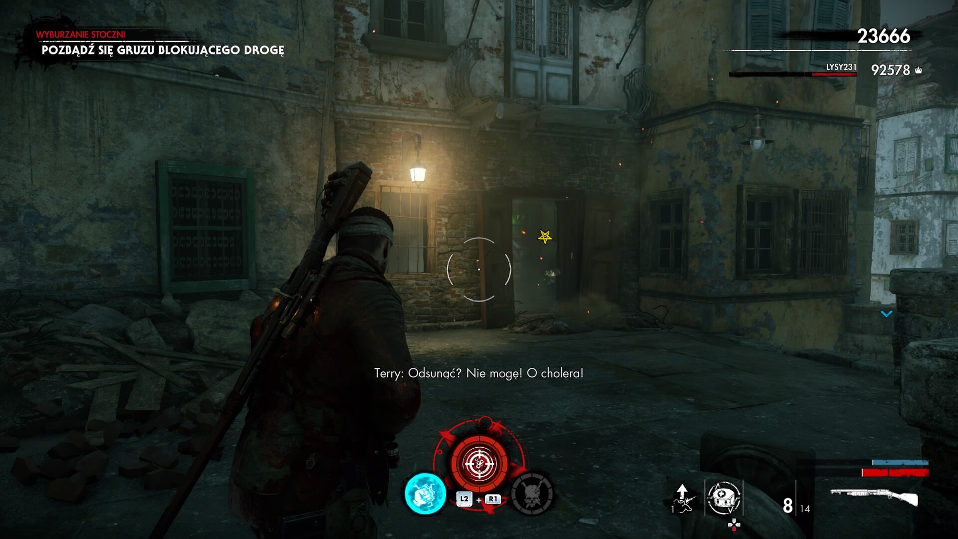 Ogólnie Brytyjczycy uporali się z tym, żeby strzelanie z broni dodatkowych nie było katorgą, jak w lekko już wiekowym Sniper Elite V2, jednak nadal czujemy, że powinniśmy zabijać naszych wrogów z broni dystansowych, co jest nam sugestywnie przypominane, jeśli uda nam się oddać perfekcyjny strzał z daleka i widzimy jak nabój robi spustoszenie w ciałach truposzy.
