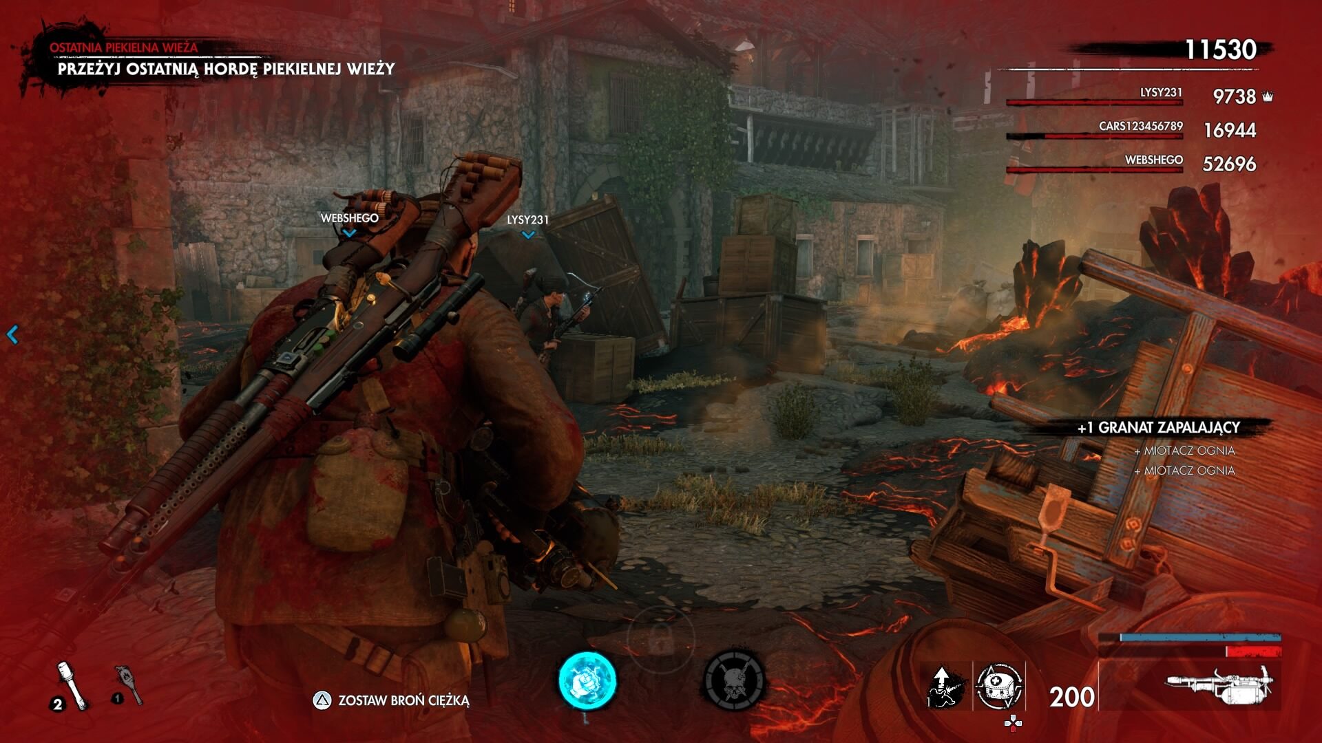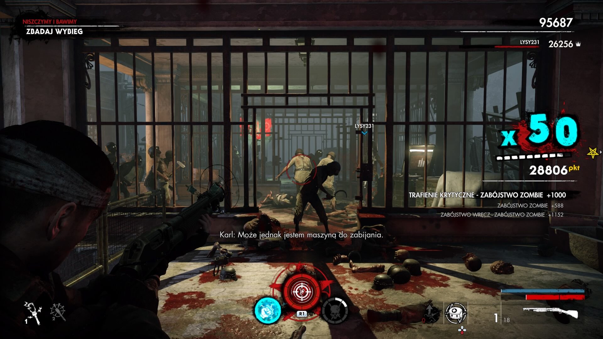 Z racji wszędobylskiego zdobywania punktów za styl, nie zabrakło prostego systemu rozwoju postaci oraz uzbrojenia. Ulepszenia dla naszego bohatera zdobywamy wraz z postępami w grze, wykonując specyficzne akcje, takie jak zabicie odpowiedniej liczby zombie granatem. System progresji naszych wojaków jest naturalny i kolejne perki możemy zdobywać po prostu grając. Nasz oręż natomiast wymaga specjalnych zestawów ulepszeń. Możemy je zdobyć w dwojaki sposób, albo przeszukując całą mapę w ich poszukiwaniu, bądź osiągając złote odznaczenie po każdym rozdziale. Osobiście uważam, że taki manewr jest ciekawy, ponieważ zachęca on gracza do jak najlepszej gry, oraz eksploracji lokacji, które niekiedy uderzają nas dobrze zrobionym horrorowym klimatem, kina klasy B.