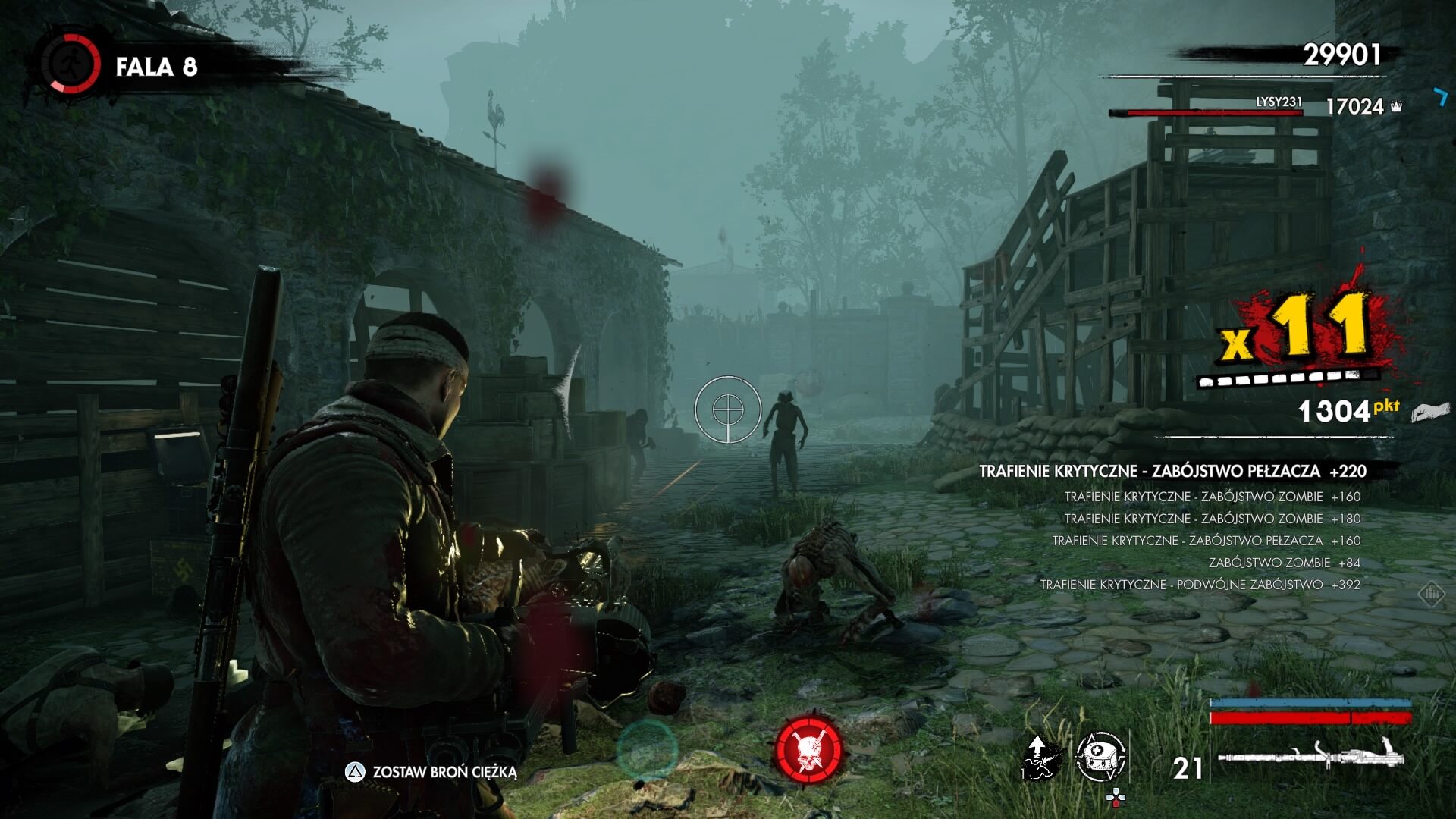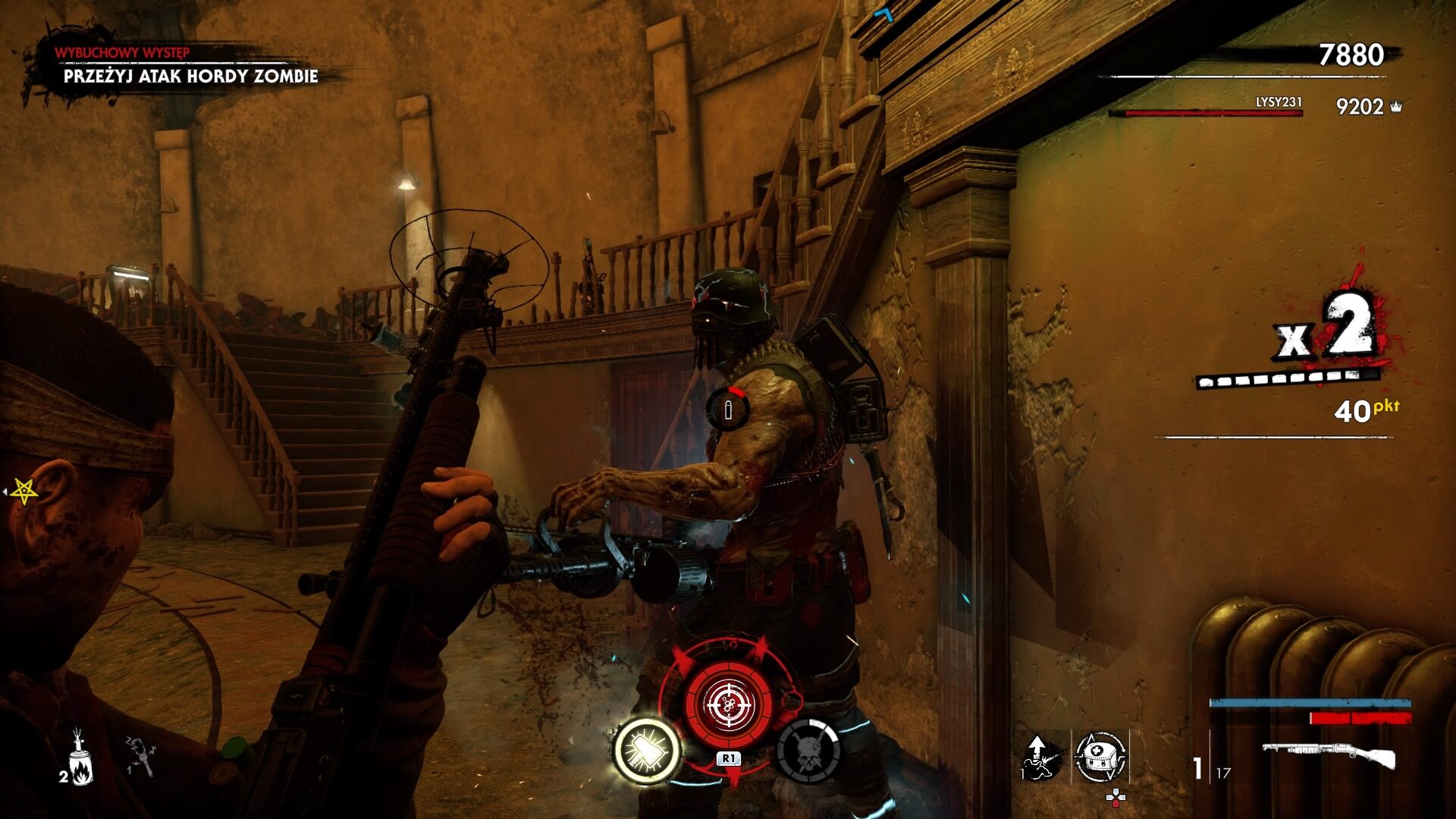 Tutaj pojawi się mój największy problem z Armią Zombie, bowiem Rebelion na potrzeby swoich gier stworzyło bardzo dobry system strzelania z karabinów wyborowych, ale z racji wielu przeciwników na ekranie, którzy nie są skorzy to poczekania, aż ustawimy się w odpowiedniej pozie strzeleckiej, częściej wybieramy broń na krótszy dystans.