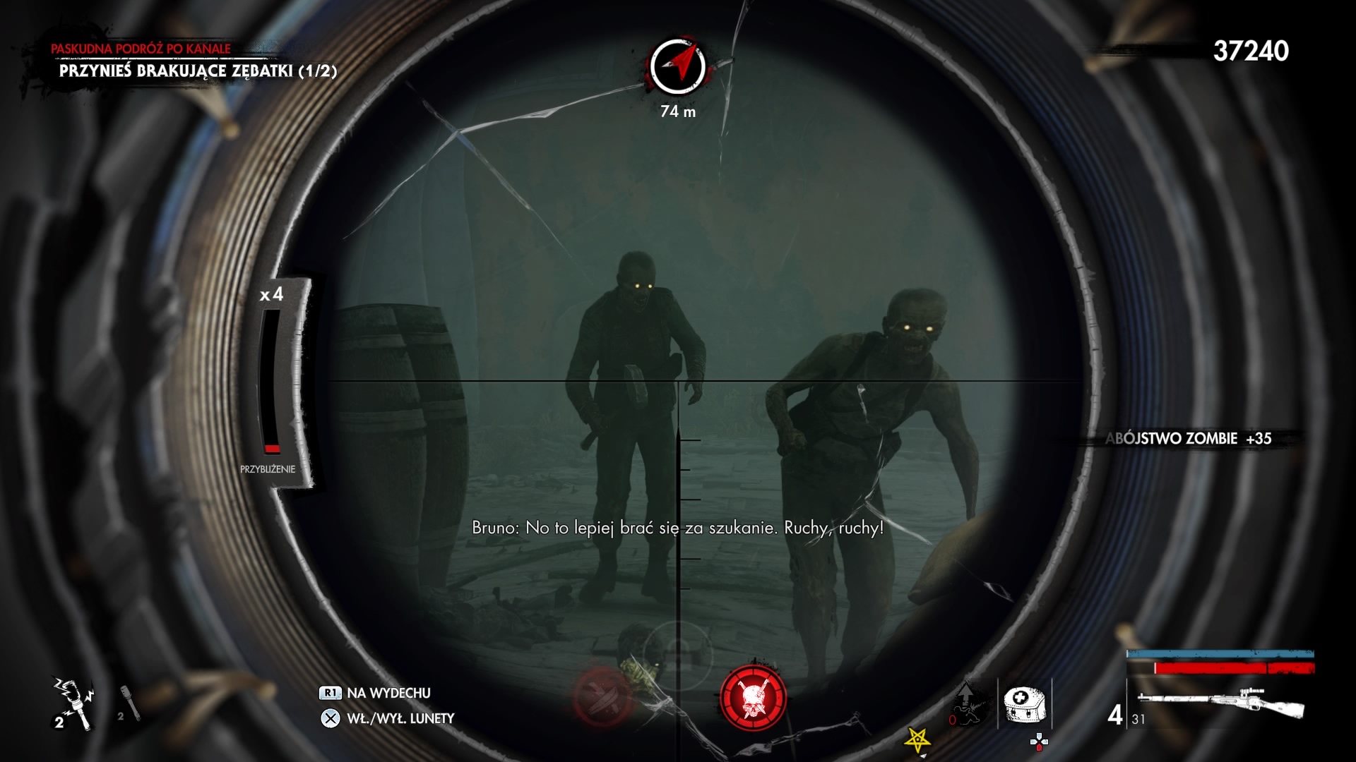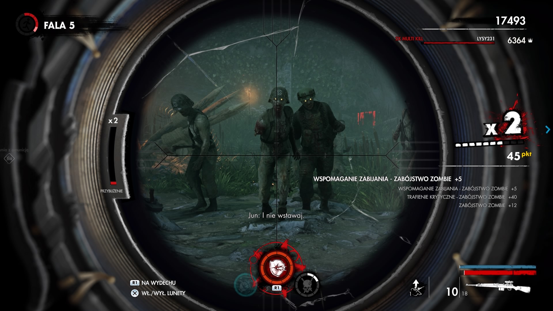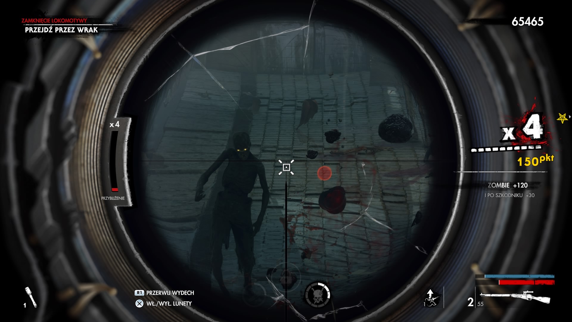 Ogólnie Brytyjczycy uporali się z tym, żeby strzelanie z broni dodatkowych nie było katorgą, jak w lekko już wiekowym Sniper Elite V2, jednak nadal czujemy, że powinniśmy zabijać naszych wrogów z broni dystansowych, co jest nam sugestywnie przypominane, jeśli uda nam się oddać perfekcyjny strzał z daleka i widzimy jak nabój robi spustoszenie w ciałach truposzy.