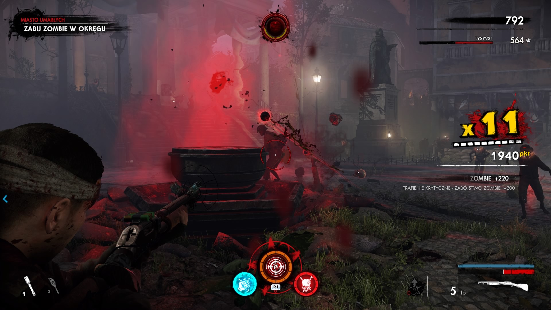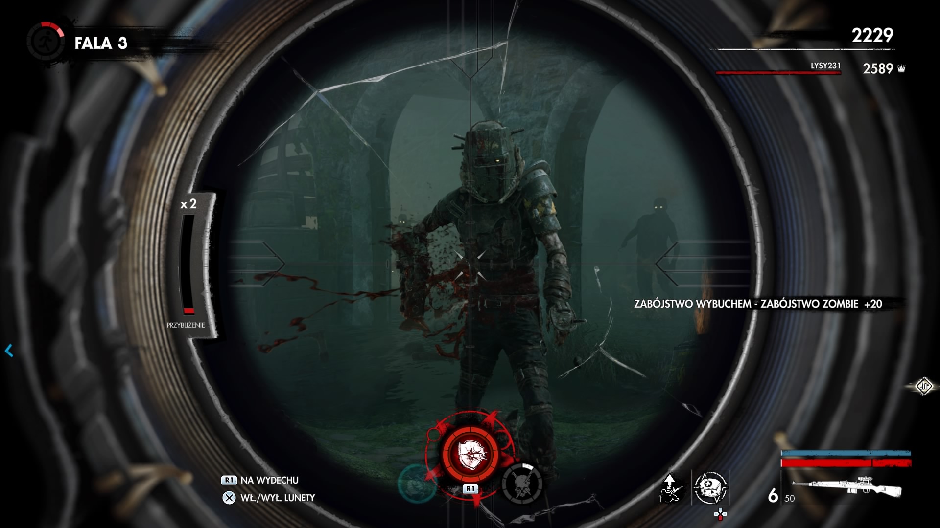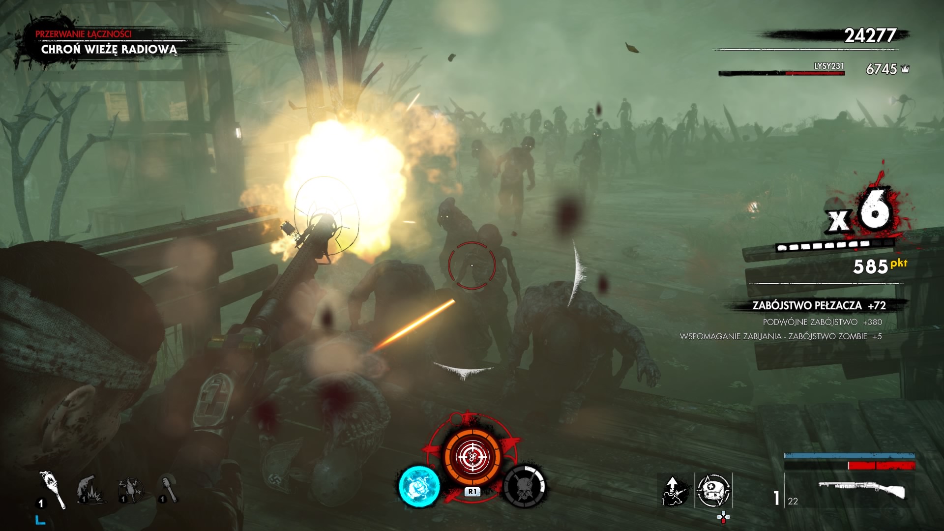 Tutaj pojawi się mój największy problem z Armią Zombie, bowiem Rebelion na potrzeby swoich gier stworzyło bardzo dobry system strzelania z karabinów wyborowych, ale z racji wielu przeciwników na ekranie, którzy nie są skorzy to poczekania, aż ustawimy się w odpowiedniej pozie strzeleckiej, częściej wybieramy broń na krótszy dystans.
