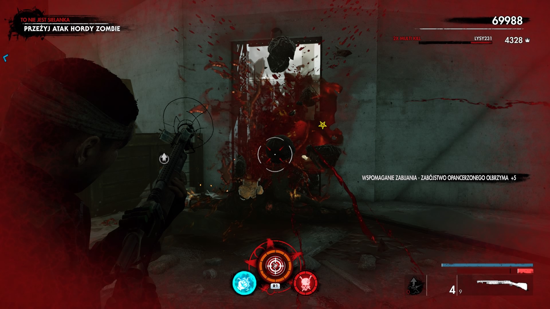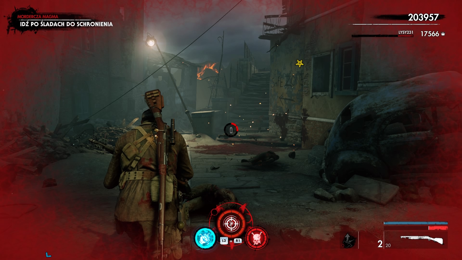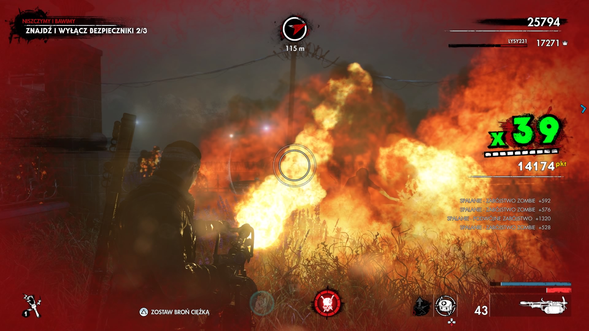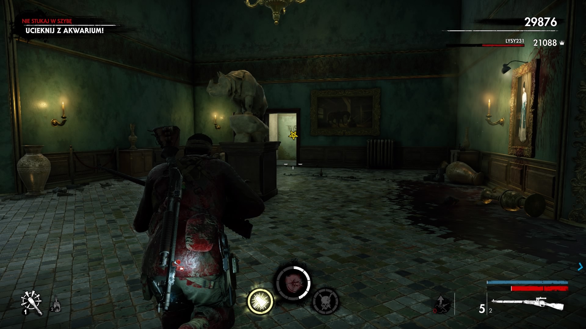 Tutaj pojawi się mój największy problem z Armią Zombie, bowiem Rebelion na potrzeby swoich gier stworzyło bardzo dobry system strzelania z karabinów wyborowych, ale z racji wielu przeciwników na ekranie, którzy nie są skorzy to poczekania, aż ustawimy się w odpowiedniej pozie strzeleckiej, częściej wybieramy broń na krótszy dystans.