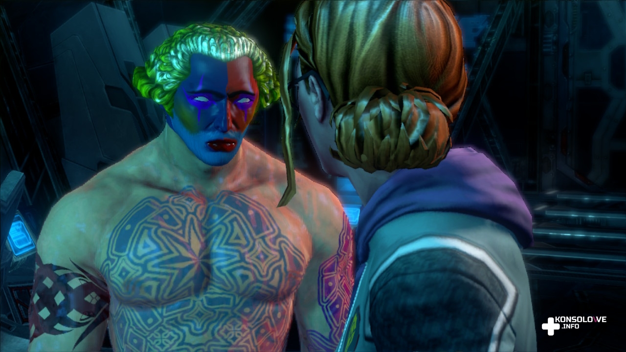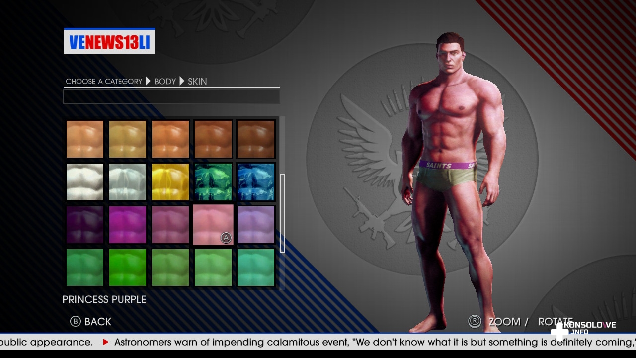 Możemy też poprawiać parametry naszego Prezydenta. Wśród dostępnych ulepszeń znajdziemy między innymi zwiększenie maksymalnego poziomu zdrowia, możliwość korzystania z dwóch broni jednocześnie, dodanie nitro do pojazdów, czy większą premię w gotówce i punktach doświadczenia za wykonanie zadania. Nie będzie na pewno problemu z wybraniem ulepszenia, które chcielibyście zakupić. Pozostając jeszcze przy naszym bohaterze, warto zaznaczyć, że na samym początku gry tworzymy swoją postać. Edytor jest zaskakująco rozbudowany i pozwala wykreować istne dziwadło. Zobaczcie zresztą sami, co mi udało się stworzyć. Co najlepsze – nic nie stoi na przeszkodzie, by mężczyzna paradował w staniku, a kobieta w męskim ubiorze. Dodajmy do tego nieprzebraną ilość akcesoriów, które możemy przypisać do naszego protegowanego (jak choćby plecak z kotem, poruszającym łapkami, gdy biegamy) i mnóstwo tatuaży, którymi możemy obdarzyć Prezydenta, a otrzymamy obraz produkcji, w której każdy może stworzyć swoją własną, unikatową postać. Decydujemy także o jej animacjach podjudzania przeciwników oraz o głosie. Mamy do wyboru kilka wersji męskiego głosu, kilka żeńskiego oraz… Nolana Northa. Ja zdecydowałem się na głos tego właśnie aktora. Sprawdził się on bardzo dobrze w roli przywódcy Stanów Zjednoczonych, często komentując humorystycznie wydarzenia. Samo udźwiękowienie jest poprawne, ale zdecydowanie nie zapada w pamięci i nie jest czymś, dlaczego włącza się tę grę.