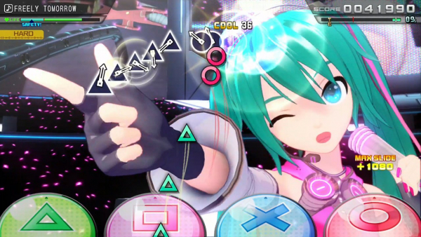 Gdy zachód wciąż czeka na swoją premierę, japońskie wydanie najnowszej części Hatsune Miku dostaje sterowanie dotykiem w trybie Arcade. Aktualizacja dodaje 4 duże przyciski na dole ekranu znane z Hatsune Miku: Project Diva Arcade przeznaczonej na automaty. W grze będzie można zmieniać ich wygląd. Bez wątpienia ta funkcja pojawi się w zachodniej wersji, która ma mieć premierę 15 Maja.