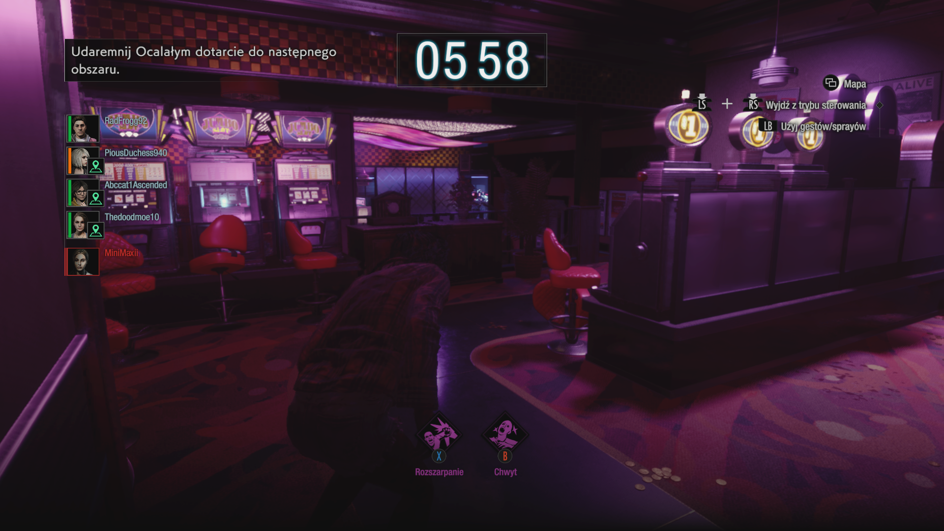 Rozgrywkę możemy więc podzielić na dwie różne płaszczyzny. Jako ocalali musimy wykonać jedno konkretne zadanie w małej lokacji, żeby móc przejść dalej. Tutaj paleta aktywności jest dosyć ograniczona, ot musimy zebrać brakujące elementy układanki, zabrać kartę dostępu od ochroniarza bądź zniszczyć zbiorniki rozsiane po mapie. W tym momencie gra w niczym nie odbiega od założenia przedstawionych w przygodach Jill bądź Leona i Claire.