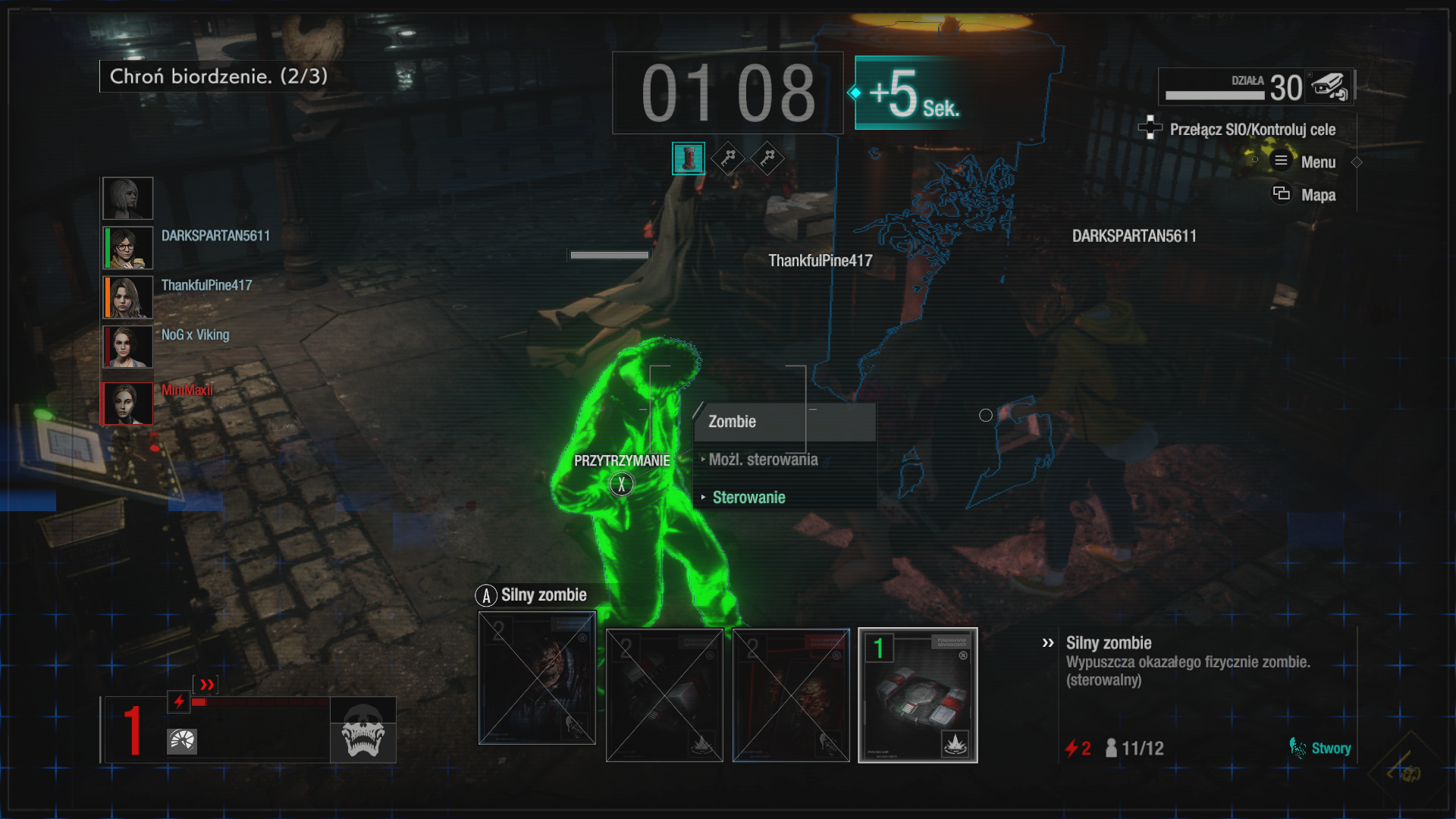Z drugiej strony mamy natomiast nasz mózg operacji. Tutaj gracz ma za zadanie obserwację swoich królików doświadczalnych i wysyłanie w ich kierunku coraz to większego zagrożenia. Arsenał narzędzi jest całkiem okazały. Możemy przyzywać słabe bądź silne zombie, do tego dodać kilka zmutowanych psów oraz wybuchających żywych trupów, a gdy to nie pomoże, zawsze możemy zaprzęgnąć do akcji któregoś z kultowych przeciwników z uniwersum. W zależności od wybranego mózgu operacji, możemy skorzystać z siły Mr.X, Wiliama Birkina bądź Nemesisa. Oczywiście, dzięki obserwacji ocalałych przez kamery, możemy dodatkowo montować pułapki, miny, staromodnie strzelać przy pomocy karabinów bądź wejść w skórę kogoś z naszej nieumarłej armii i samemu pognębić ocalałych.