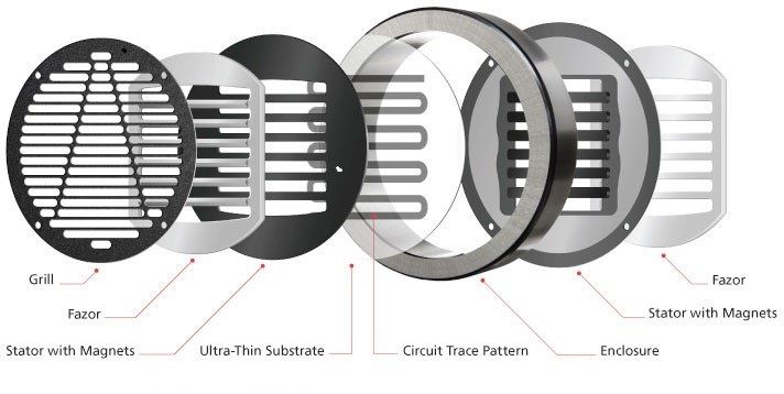 Przetworniki planarne były bardzo popularne w latach 70-tych, a dzisiaj za sprawą firm Azure oraz HiFiMAn przeżywają prawdziwy renesans. Dlaczego przetworniki uznane wiele lat temu za rzekomo szkodliwe dla zdrowia (zbyt duże pole magnetyczne – prawda jest taka, że przetworniki dynamiczne stały się łatwiejsze i szybsze w produkcji) teraz ponownie zaczynają być na topie? Konstrukcja przetworników planarnych, zwanych też ortodynamicznymi, również opiera się na drgającej membranie. Z tą jednak różnicą, że na całej powierzchni zamontowano cewkę o kształcie najczęściej spiralnym. Jest stale z nią połączona oraz umieszczona między dwoma bardzo silnymi magnesami, a dźwięk wydobywa się w momencie działania sił magnetycznych między nimi.