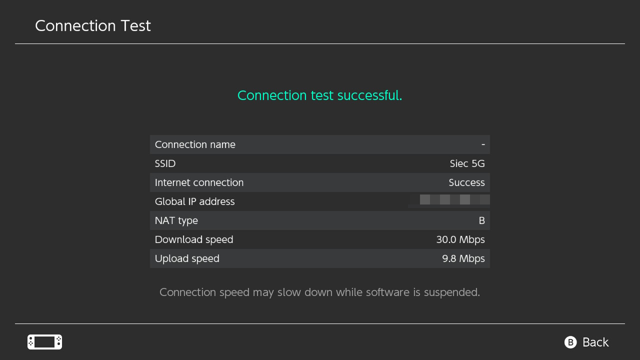 Tylko dla porównania wykonałem test także na Switchu. Nintendo jednak nie wyposażyło swojej konsoli w wyjątkową kartę sieciową, więc tak jak i z pustego to i Salomon nie naleje, tak na Switchu nie pobierzemy danych z oszałamiającą prędkością.
