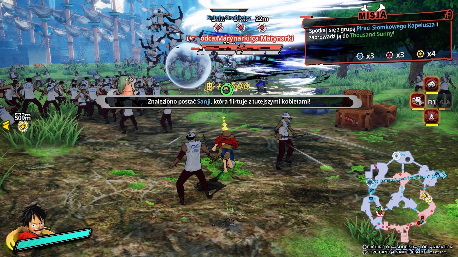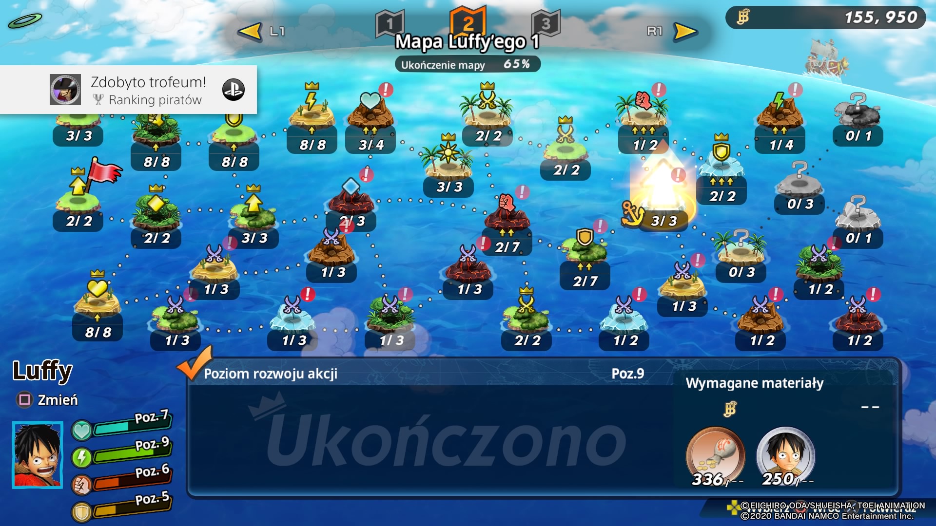 Oczywiście musimy mieć za co kupować nasze zdolności. Tutaj system jest dwojaki, ponieważ nie wystarczy posiadać dużej ilości beli (waluta świata One Piece), ale również w naszej sakiewce muszą znaleźć się odpowiednie medale. Te zdobywamy przez eliminowanie silnych przeciwników, oraz po każdej ukończonej misji. System progresu jest naturalny, bo z każdym kolejnym zadaniem oraz ukończoną wyspą stajemy się potężniejsi, co idealnie współgra z historią przygód Załogi Słomkowego Kapelusza, która z biegiem czasu zyskiwała nowe zdolności. Dla mnie jako dla fana jest to ogromny plus.