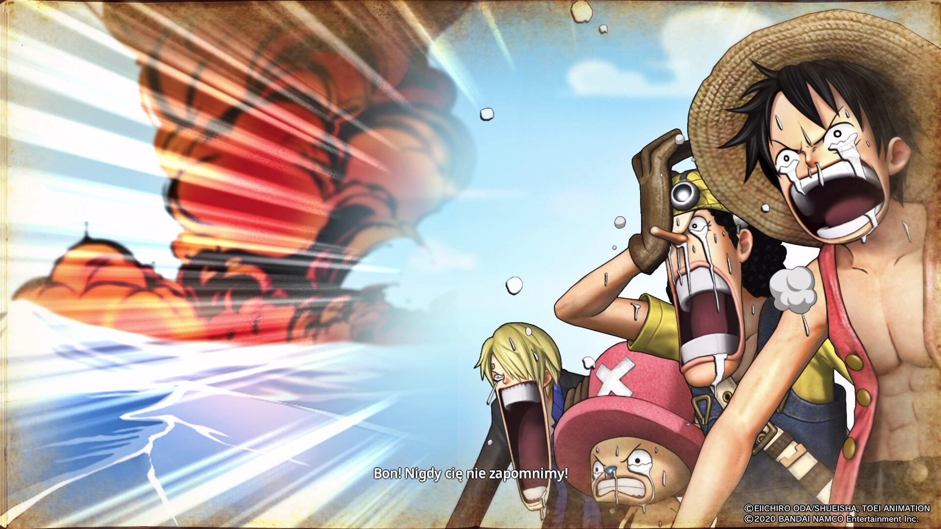 Gra bierze 6 głównych Arców znanych z anime, przez co jeśli nie jesteśmy zaznajomieni z materiałem źródłowym, to niektóre wydarzenia mogą być dla nas niezbyt jasne. Pomijając to, jednak twórcy zrobili jedną rzecz, za którą należą się im brawa. Przenieśli oni bowiem większość scen, która chwytała za serce w mandze bądź anime i sprawili, że podczas niektórych przerywników serce może zabić nam mocniej, a u co bardziej wrażliwych pojedyncza łza może skapnąć po policzku (każdy, kto wie jaka historia towarzyszy Going Merry, będzie wiedział o co chodzi). Jednym słowem fabuła dla fana pierwowzoru będzie doskonale znana, jednak widać, że twórcy potraktowali materiał źródłowy z należytym szacunkiem.