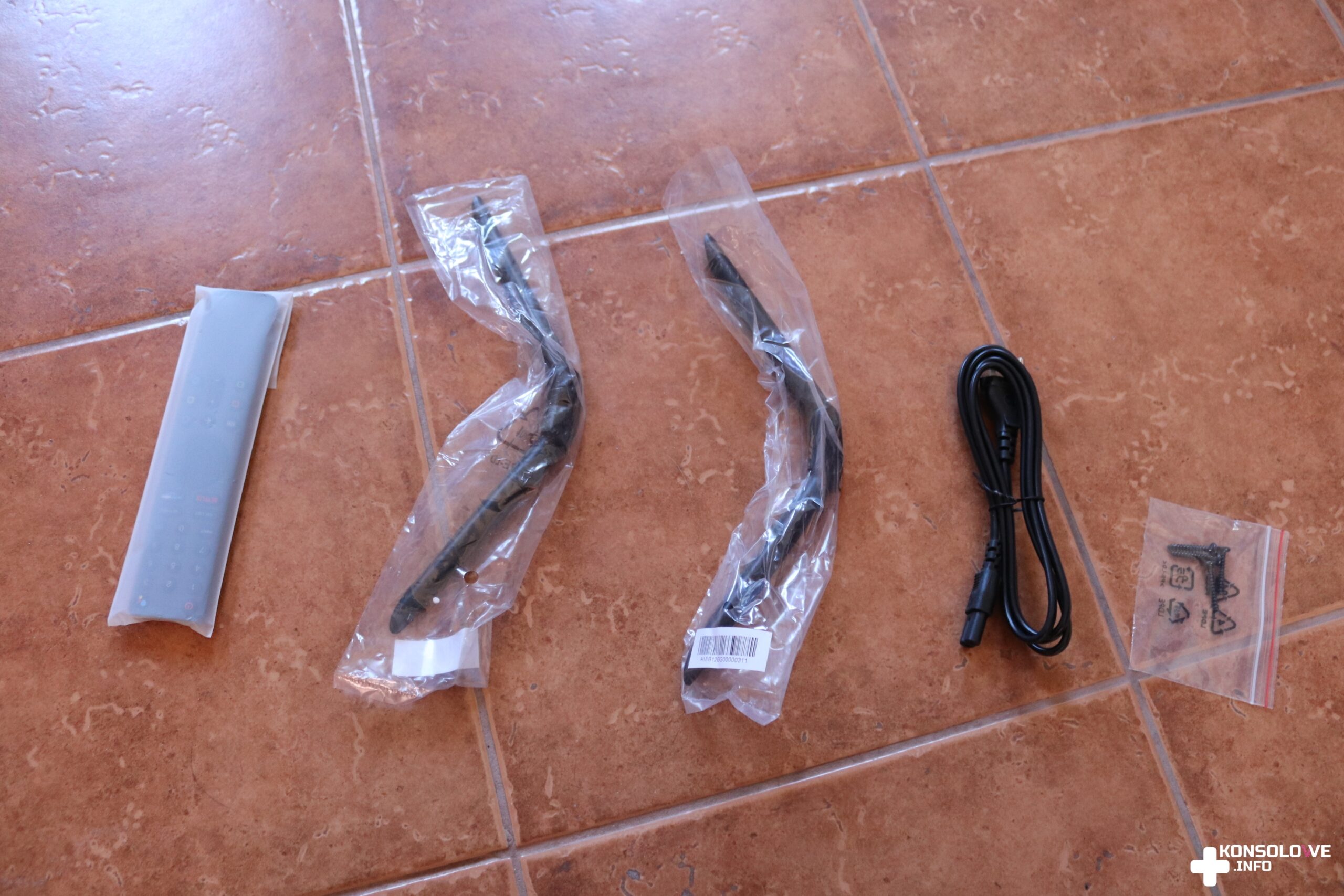Mi TV 4S przychodzi w sporym kartonie. Po jego otwarciu naszym oczom ukazuje się dobrze zabezpieczony sprzęt. Pomijając standardowe wypełnienia styropianowe, miłym zaskoczeniem okazał się foliowy worek z uchwytami, mieszczący telewizor. Z racji na rozmiar wskazane jest naturalnie wyciąganie go przez dwie osoby, ale dodanie otworów do worka znacząco ułatwia sprawne wysunięcie sprzętu. W kartonie znajdziemy również nóżki, wkręty, kabel zasilający i instrukcję oraz pilota. Niżej możecie zapoznać się ze specyfikacją techniczną testowanego sprzętu.