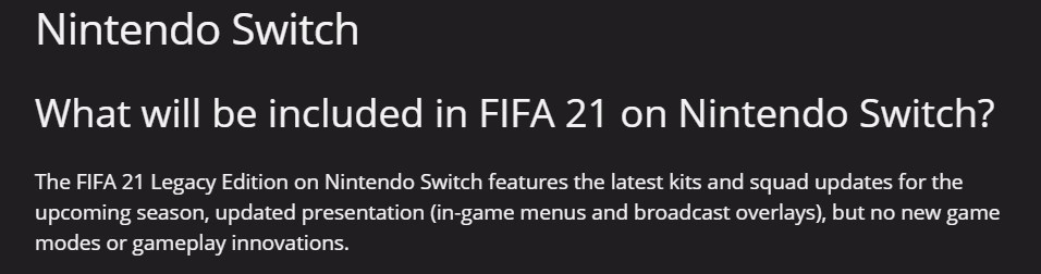 FIFA 21 Legacy Edition na Nintendo Switch nie będzie zawierać żadnych zmian w rozgrywce o raz w trybach gry, zostanie tylko przemodelowane menu oraz pojawi się aktualizacja składów na nadchodzący sezon.
