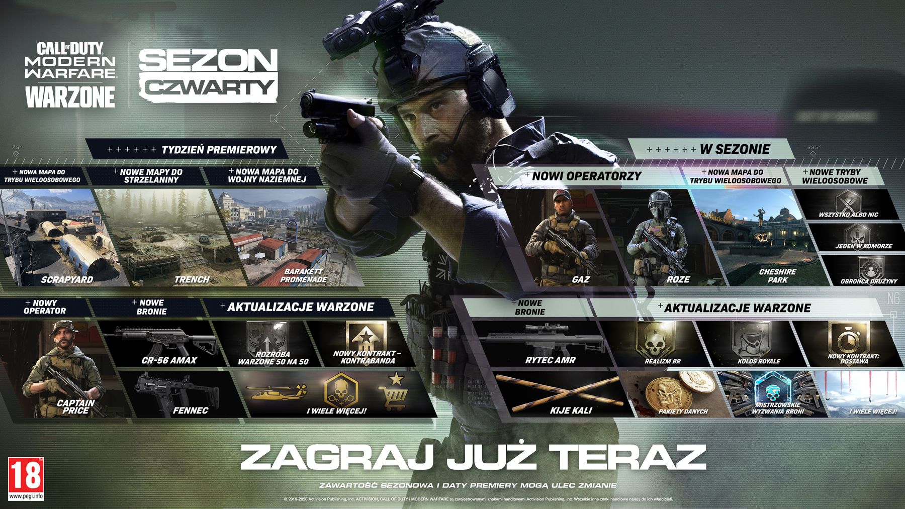 Przypominamy, że wczoraj sezon czwarty gry Call of Duty: Modern Warfare został oficjalnie rozpoczęty. Wszystkie zmiany i nowa zawartość, które przynosi bieżąca aktualizacja, w tym nowe mapy, tryby i szczegóły Karnetu Bojowego zostały opisane na oficjalnym blogu Activision.