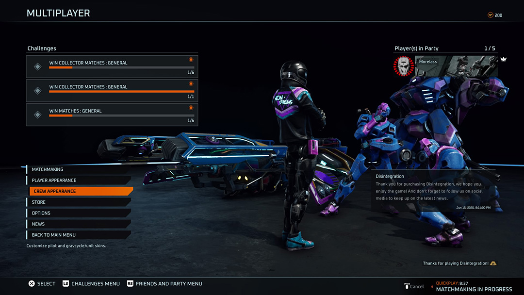 Poza trybami i mapami możemy wybrać jedną z dostępnych ekip, która poza wyglądem różni się też szybkością, umiejętnościami, siłą ognia i wyposażeniem naszego Gravicykla. Do wyboru mamy 9 różnych ekip i faktycznie tutaj znajdziemy zauważalne różnice, chociażby w tym jak prowadzi się nasz pojazd (są wolniejsze, szybsze, lepiej opancerzone Gravicykle, więc każdy znajdzie coś dla siebie). Dodatkowo w czasie potyczek możemy zaliczać wyzwania, które pozwolą nam na zmiany wyglądu naszego zespołu. Nie wpływają one jednak znacząco na możliwości bojowe.