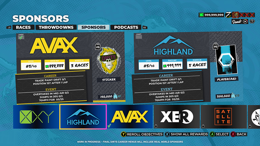Gracze mogą przełączyć się na nowego sponsora, kiedy tylko zechcą. Chociaż z drugiej strony im wcześniej go opuścimy, tym mniej nagród możemy otrzymać.