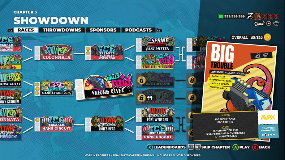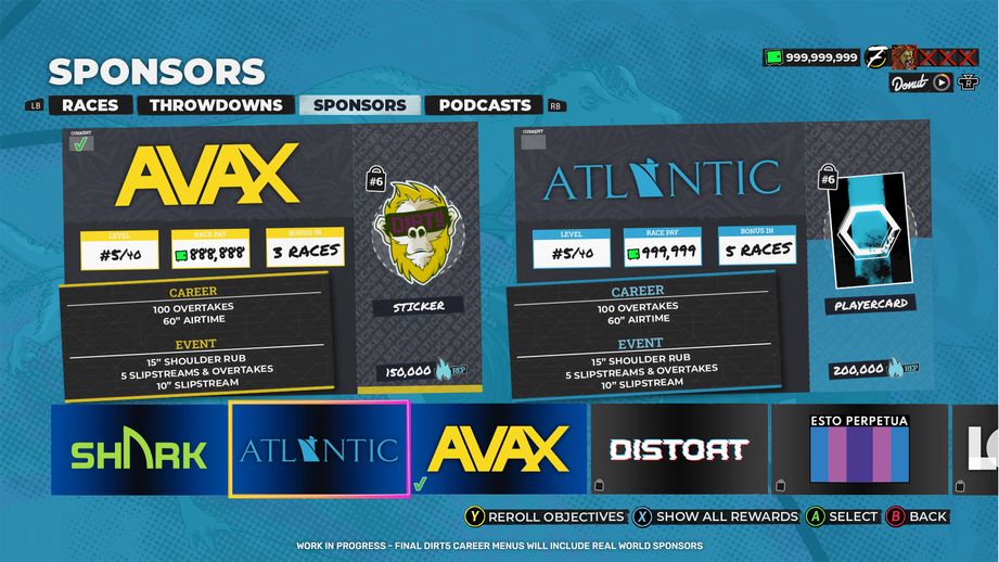 „Tryb kariery w DIRT 5 jest podstawą gry i daje graczowi wciągającą zabawę z możliwością wielu wyborów. Troy, Nolan i Donut Media stworzyli żywy świat, do którego gracz zechce należeć i w nim współzawodniczyć. To od niego zależy, czy uda mu się pokonać wyzwania i zwyciężyć w Głównym Wydarzeniu.”