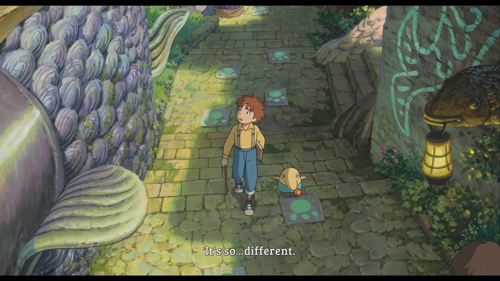Strona audiowiuzalna produkcji, to moim zdaniem najwyższa półka. Nieważne czy zapytacie mnie o wersję na PlayStation 3 czy PlayStation 4, bez zawahania powiem, że obie wyglądają zjawiskowo. Tutaj oczywiście ogromne słowa uznania należą się Studiu Ghibili, które sprawiło, że całość mogłaby spokojnie uchodzić za pełnometrażowy film fabularny. Projekty postaci czy też familiarów stoją na najwyższym poziomie i aż miło się patrzy, kiedy przed naszymi oczami pojawią się tak piękne obrazy. Nieważne, czy przemierzamy tajemnicze lasy, ludzkie osady czy też całkiem nowoczesne zabudowania – wszystko wygląda znakomicie.