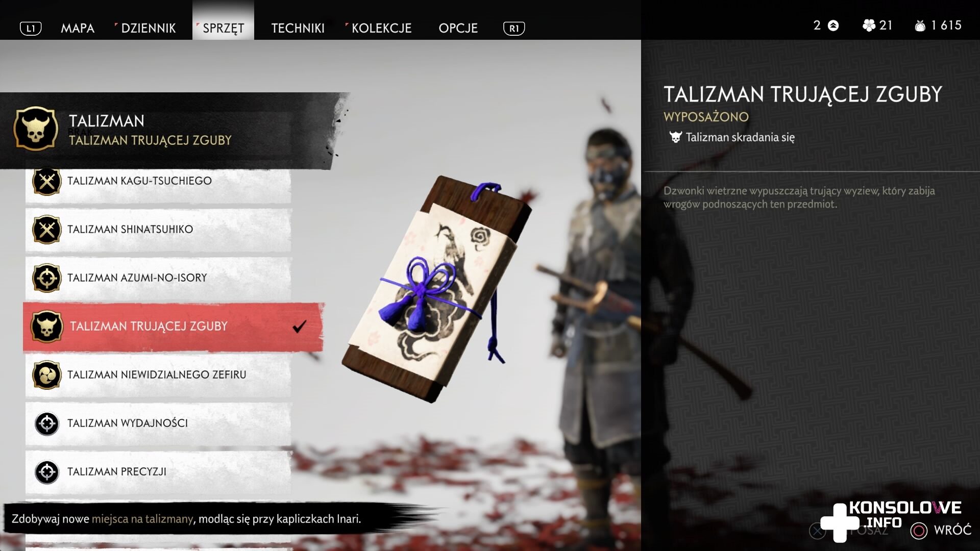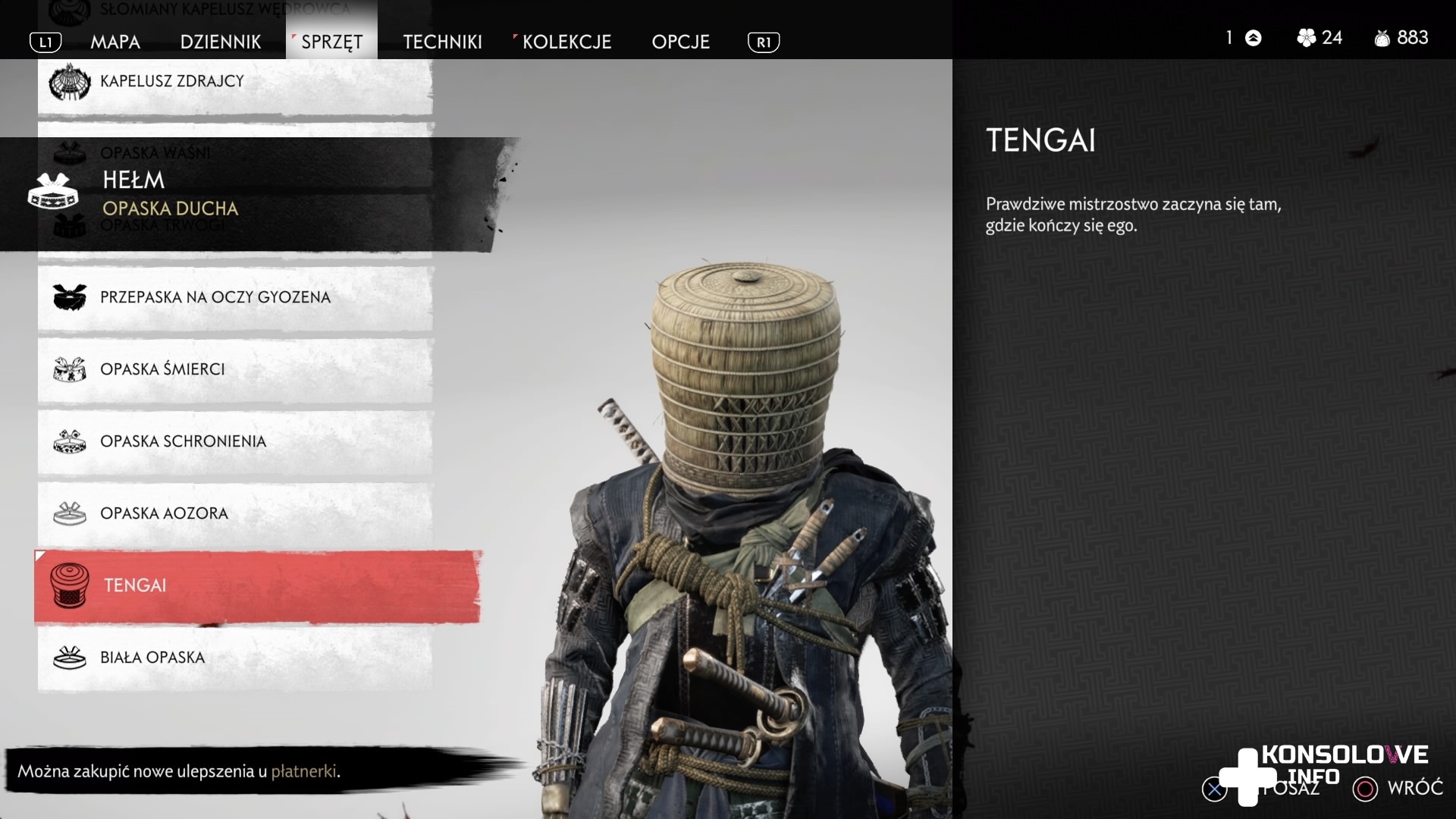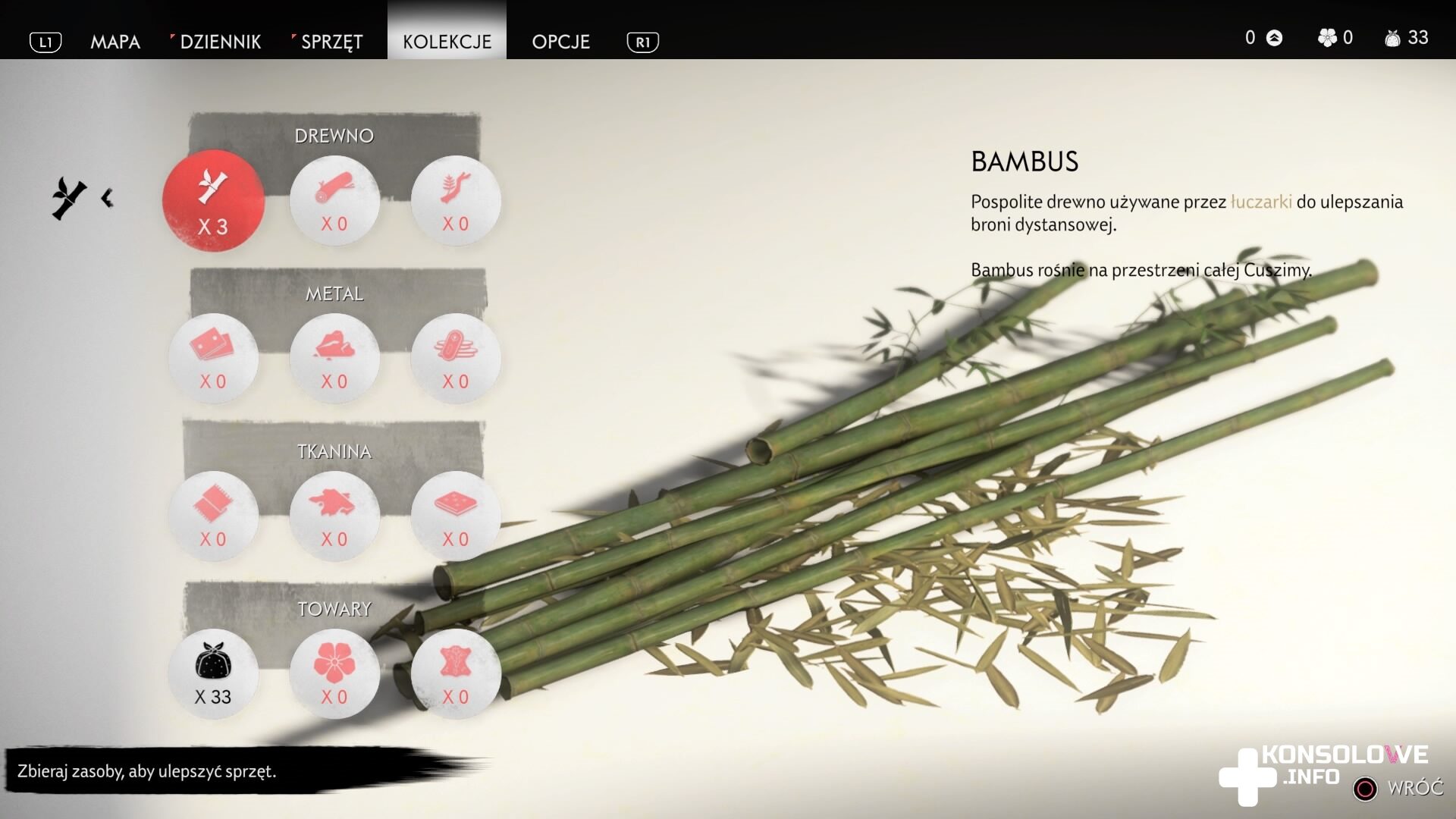 Ghost of Tsushima pozwala zmieniać wiele elementów opancerzenia. Możemy więc zadecydować o hełmie, jaki będzie nosił Jin, zbroi, czy masce. O ile ta ostatnia i hełm wpływają jedynie na wygląd samuraja, o tyle zbroja ma zdecydowanie większe znaczenie. Decyduje ona o odnoszonych przez nas obrażeniach, poziomie zdrowia, czy o prędkości wykrywania nas przez przeciwników. Pancerz, podobnie jak bronie (katanę, łuk, tanto) możemy ulepszać u odpowiednich osób. Zebrawszy stosowną ilość materiałów – zapasów, bambusa, drewna cisowego, stali i tak dalej – możemy udać się do odkrytego miasta i odwiedzić stosownego fachowca. Traperowi sprzedamy zdobyte na dzikich zwierzętach skóry i zwiększymy maksymalną liczbę przenoszonych strzał, czy kunai. Płatnerz ulepszy naszą zbroję, co wiąże się też ze zmianą wizualną. Jeśli jednak preferujecie poprzedni wygląd zbroi, istnieje możliwość powrócenia do stylu sprzed ulepszenia, zachowując jednocześnie profity związane z wyższym poziomem sprzętu. Zbrojmistrz pozwoli nam zwiększyć obrażenia zadawane przez katanę i uczyni zabójstwa z ukrycia bardziej cichymi, dzięki czemu Mongołowie nie będą tak szybko alarmowani. Jest też łuczarka, która ulepszy nasz łuk, sprawiając, że będzie zadawał większe obrażenia, a u kupca zamienimy zebrane kwiaty do barwników do broni i zbroi. Zdecydowanie jest na co wydawać zgromadzone w grze surowce i każdy znajdzie styl, który będzie zgodny z osobistymi upodobaniami.