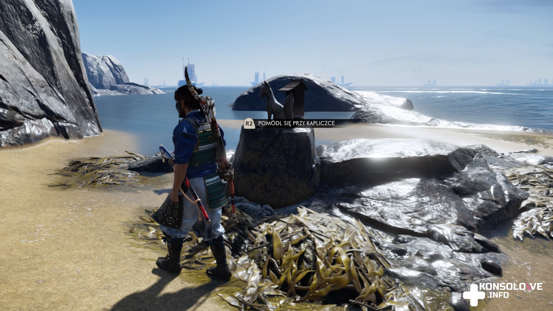 Jednak nie samym Trybem Fotograficznym stoi Ghost of Tsushima. Jakość strony audiowizualnej Ducha Cuszimy zachwyca – począwszy na pięknych polach pełnych trawy, przez malownicze (choć nierzadko wyposażone w dość rozmazane tekstury – co widać zwłaszcza z bliska) góry, na plażach, fortach i wioskach kończąc. Dzieło Sucker Punch oferuje bardzo zróżnicowany teren, który jest jednocześnie bardzo spójny i wiarygodny. Każda miejscówka, którą odwiedzamy i postać, z którą rozmawiamy przedstawiają pewną historię – czekającą tylko na odkrycie i wpłynięcie na jej przyszłość. Ghost of Tsushima już od pierwszych minut pozwala całkowicie zanurzyć się w Cuszimie. Dzięki bardzo dobrej grafice i sposobowi wskazywania drogi do celu momentalnie zapominamy o realnym świecie, a godziny uciekają nie wiadomo kiedy. Na pewno znacie różnego rodzaju wskaźniki, informujące o punkcie docelowym w grach z otwartym światem. Czy jest to bat-sygnał (jak najbardziej zgodny z realiami świata w serii Batman: Arkham), czy na przykład żółty punkt widoczny z daleka i wyposażony w licznik odległości od naszego bohatera, niemal zawsze mamy do czynienia z wyraźnie zauważalnym dodatkowym wskaźnikiem. Ghost of Tsushima wyłamuje się z tego trendu, pokazując nam drogę za pomocą wiatru! Zapomnijcie o dodatkowych elementach interfejsu HUD. Przemierzając Cuszimę, będziecie podążali w kierunku, w którym wieje wiatr! Uginają się po nim drzewa, źdźbła, trawy – sprawia to, że nasza podróż jest niesłychanie autentyczna. Ghost of Tsushima zawiera najlepszy i najmniej inwazyjny system wskazywania drogi, z jakim kiedykolwiek spotkałem się w grach. Co więcej, zwierzęta również potrafią pokazać nam, dokąd powinniśmy się kierować. A to lis wskaże drogę do kapliczki, zwiększającej dostępne dla nas gniazda na talizmany, a to ptak pokaże nam, gdzie są stoiska z bambusami, których przecięcie (przez sekwencje QTE) zwiększy siłę naszych ataków, a to czarny dym pokieruje nas do miejsca, w którym znajduje się coś interesującego. Eksplorowanie wyspy i poznawanie jej na własną rękę jest tak samo przyjemne, jak naturalne i wciąga na długie godziny, spychając – bardzo dobry skądinąd – główny wątek na boczny tor. Chyba jedynie Wiedźmin III w takim samym stopniu, co Ghost of Tsushima zachęcał do zwiedzania świata.