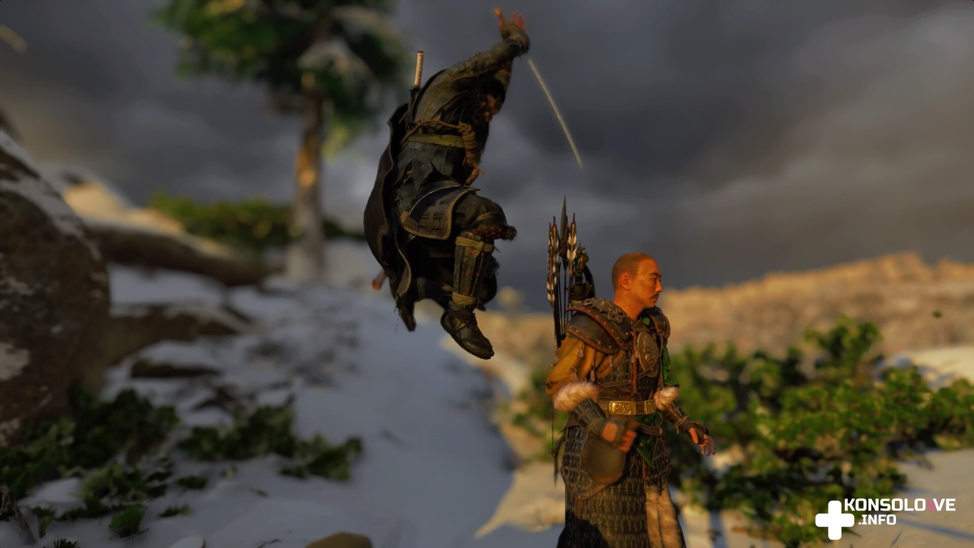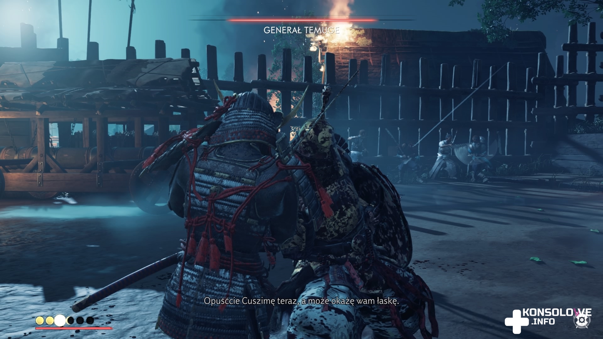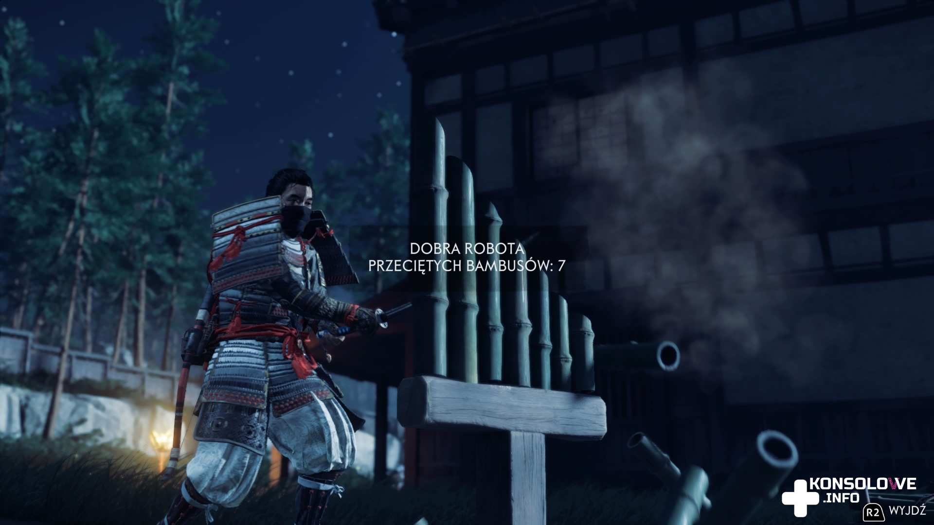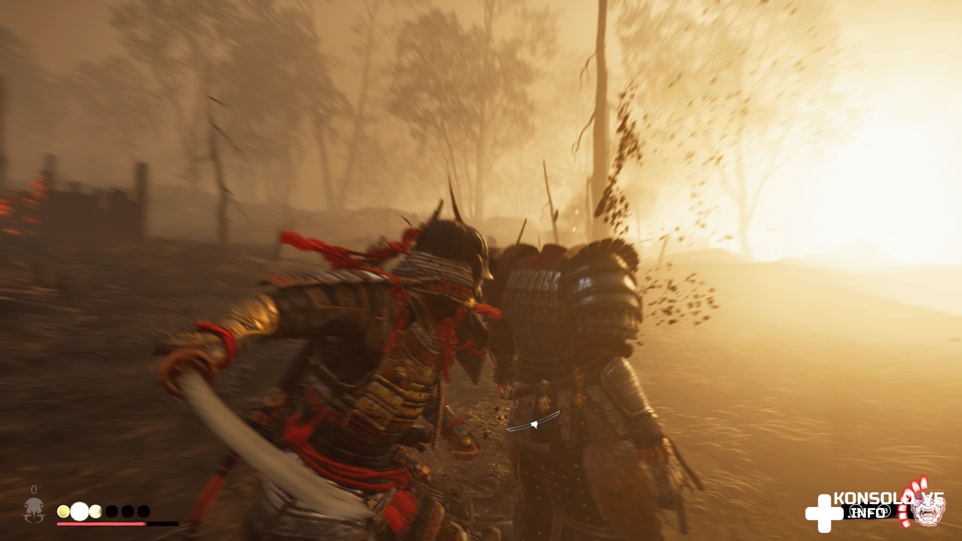 Cuszima to, mimo toczącej się wojny, świat pełen życia. W osadach natkniemy się na ocalałych mieszkańców, którzy będą mieli dla Jina misje poboczne. Bardzo spodobało mi się to, że opcjonalne zadania nie są prostym „pójdź, znajdź, przynieś”. Każda z nich jest fabularyzowana, przez co można poczuć, że Cuszima to faktyczny kraj targany problemami wojny. Niekiedy musimy odnaleźć ślady, aby odszukać uciekiniera. Fantastyczne jest to, że nie znajdziemy żadnego wskaźnika na minimapie. Musimy samemu zauważyć ślady w błocie i udać się za nimi do celu. Na drodze mogą nas też spotkać przeciwnicy, których możemy wyzwać na pojedynek. Jest to w pełni opcjonalne, ale jeśli dobrze wykorzystamy tę możliwość, możemy znacząco ułatwić sobie starcie. Decydując się na prowokowanie oponentów, zobaczymy jak idą oni do nas powoli, wystawiając przeciw nam kilku Mongołów. Przytrzymujemy trójkąt, a moment przed tym, jak przeciwnik nas zaatakuje (musimy dokładnie się przyglądać, bo zdarza się, że przeciwnicy celowo udają atak, aby nas zmylić) puszczamy trójkąt, a Jin zabija oponenta jednym widowiskowym ciosem. Odpowiednie rozwinięcie tej umiejętności pozwoli nam zlikwidować następnych przeciwników podobnym efektownym ciosem, przez co znacząco ułatwimy sobie dalsze starcie z pozostałymi przy życiu oponentami.