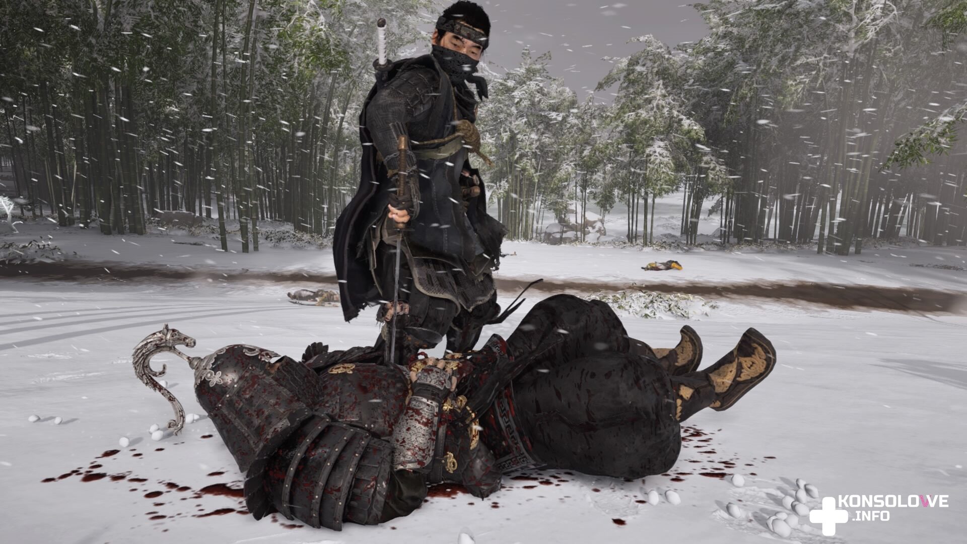 Rozgrywka nie składa się jedynie z odkrywania rozległego terenu wyspy Cuszima. Skoro mamy do czynienia z trzecioosobową grą akcji, to nie może zabraknąć walki z przeciwnikami. Do tej przystępujemy na kilka sposobów. Pierwszym z nich jest pozbawione honoru, za to stawiające na taktyczne zdejmowanie Mongołów agresywne skradanie. Za pomocą swojego tanto nasz samuraj jest w stanie pozbywać się nie spodziewających się go przeciwników po cichu. Przydatny jest także łuk, dzięki któremu zdejmiemy oponentów obserwujących teren fortu, czy przejętego obozu, nie dając się wykryć. Jin ma na podorędziu również szereg gadżetów. Niektóre z nich to: dzwonek wietrzny (rzucając nim, możemy nakłonić oponenta do zbadania miejsca, w które trafiliśmy), bomba dymna (ułatwiająca nam zniknięcie w kłębach dymu i wycofanie się w bezpieczne miejsce lub ciche zabijanie zdezorientowanych przeciwników), czy na przykład przyklejającą się do oponenta bombę, która wybucha po pewnym czasie. Dodatkowo, możemy po cichu przeczołgiwać się pod namiotami, czy korzystać z liny do dostania się w wyżej lub dalej położone miejsca.