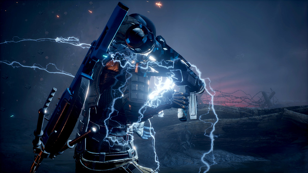 Technomanta zajmuje miejsce na środku sceny, współpracując z niszczycielem i piromantą podczas intensywego starcia w okopach, prezentując przebieg jednej z wielu trudnych bitew, jakich gracze doświadczą w Outriders.
