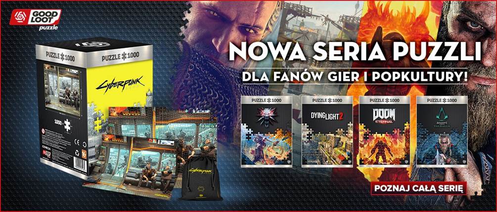 Firmy Cenega i Good Loot mają przyjemność przedstawić Good Loot Puzzle, kolekcję wysokiej jakości puzzli, z którą fani gier i popkultury przeniosą się do ulubionych światów, odwzorowanych na wyjątkowych grafikach do ułożenia samemu lub w większym gronie. 9 zestawów przedstawi miłośnikom układania puzzli uniwersa takich gier jak Cyberpunk 2077, Assassin’s Creed Valhalla, Dying Light 2 i Doom Eternal już 10 września 2020 roku. A to dopiero początek. Seria puzzli będzie rozszerzana zarówno o nowe motywy graficzne, jak i nowe tytuły gier, na bazie których powstaną kolejne, wyjątkowe zestawy.
