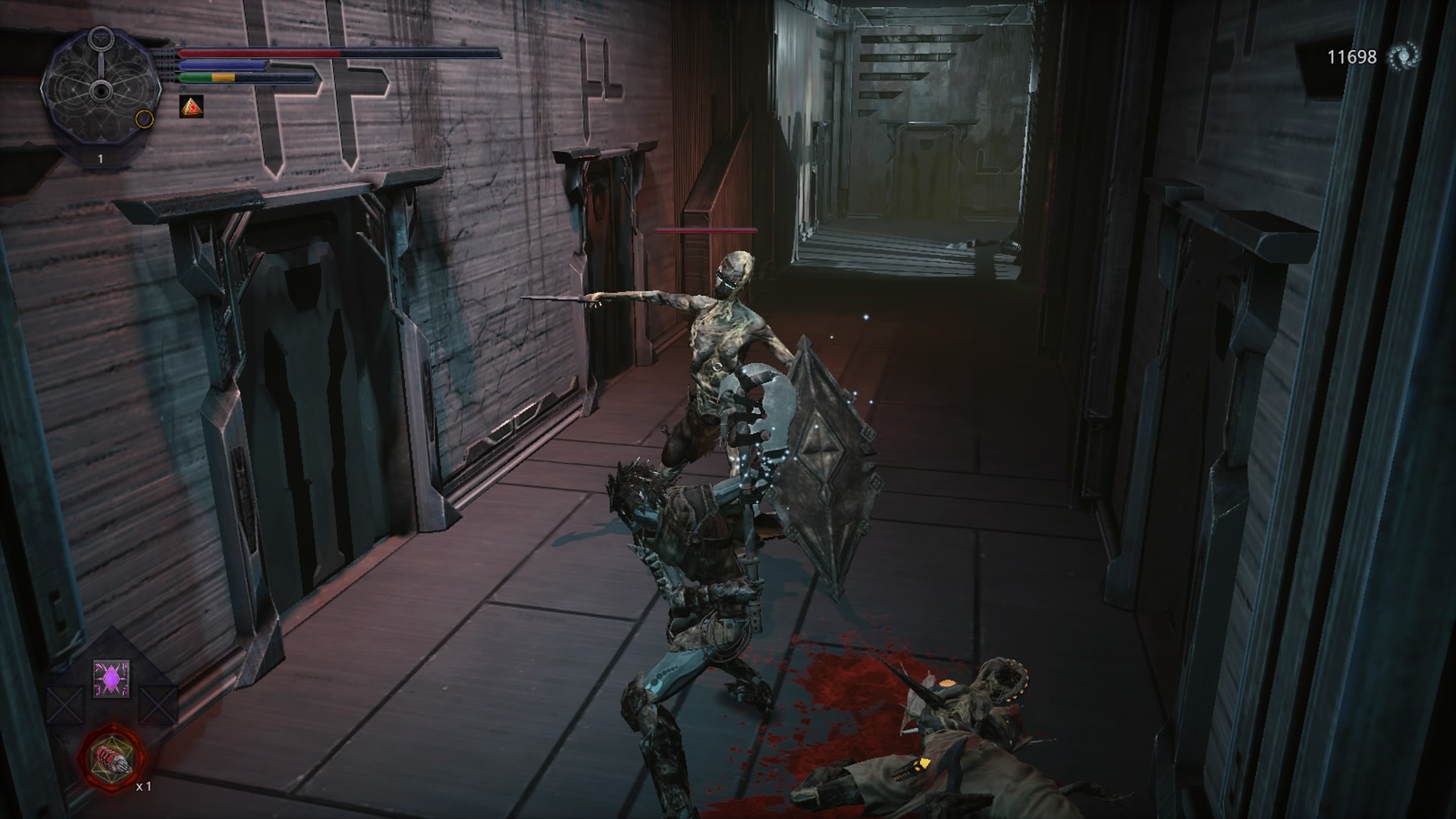 W kwestii mechaniki mamy natomiast pełną klasykę, jeśli chodzi o ten konkretny gatunek. Tym samym będziemy przemierzać bliźniacze korytarze stacji, szlachtować napotkanych przeciwników oraz mierzyć się z potężnymi bossami. Walka nie zaskoczy nikogo, kto miał do czynienia z podobnymi produkcjami. Mamy więc ataki silne oraz słabe, blok oraz unik, który jak to zwykle w tego typu grach bywa, będzie dla nas niezastąpiony.