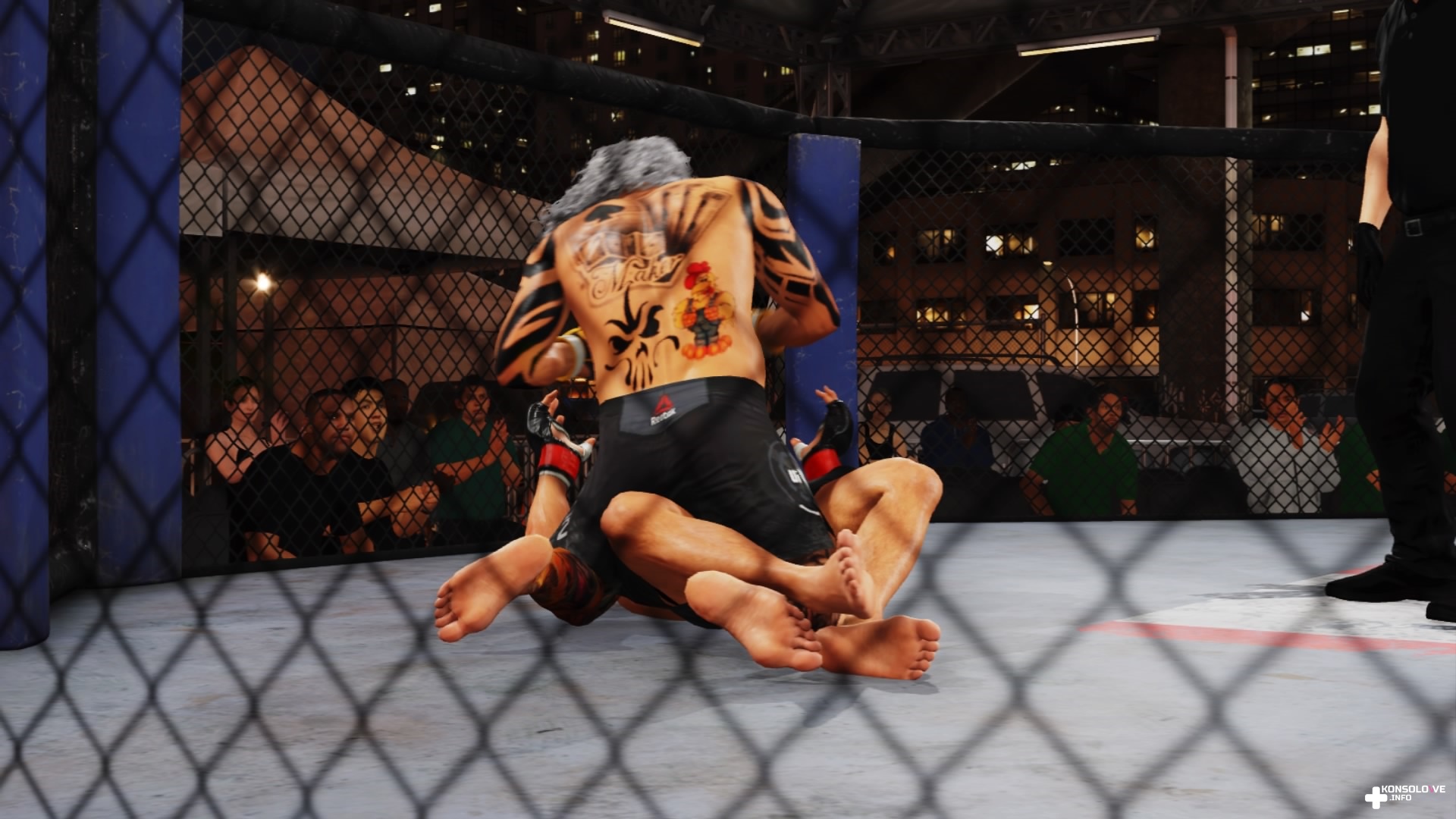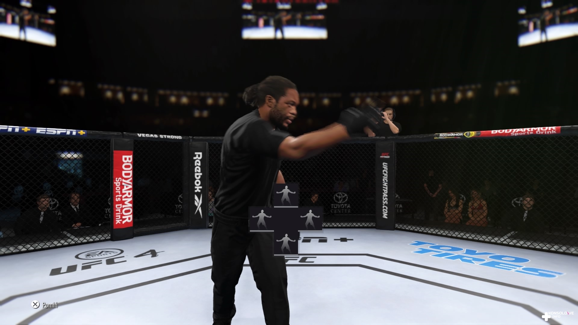 No dobrze, ale co można robić w UFC 4 oprócz kreowania postaci? Okazuje się, że naprawdę sporo. Pierwszym z trybów, które opiszę jest kariera. Prowadzimy tu naszego zawodnika od samego początku, kiedy podczas ulicznych walk zauważył go trener. Kariera z początku stanowi formę samouczka – trener co jakiś czas stawia przeciw nam innego zawodnika z jego szkoły, aby nauczyć się akcji ofensywnych i defensywnych. Jest to bardzo dobra forma szkolenia – nie wykonujemy ciosów i specjalnych ruchów w zestawieniu z przedmiotem, tylko z wirtualną osobą – różnica może nie brzmi zauważalnie, ale jednak porównując (dostępne w grze) próby z workiem treningowym i starcia z przeciwnikiem, szala przechyla się na jego korzyść. Odpowiednie radzenie sobie w walkach – co nie znaczy, że każdą musimy wygrać, przecież przegrana jest naturalną częścią każdego sportu – sprawi, że będziemy brać udział w coraz to bardziej profesjonalnych lokacjach, trafiając od zwykłego parkingu miejskiego do oświetlonych blaskiem reflektorów wielkich aren sygnowanych przez tak znane firmy jak T-Mobile i UFC Apex.