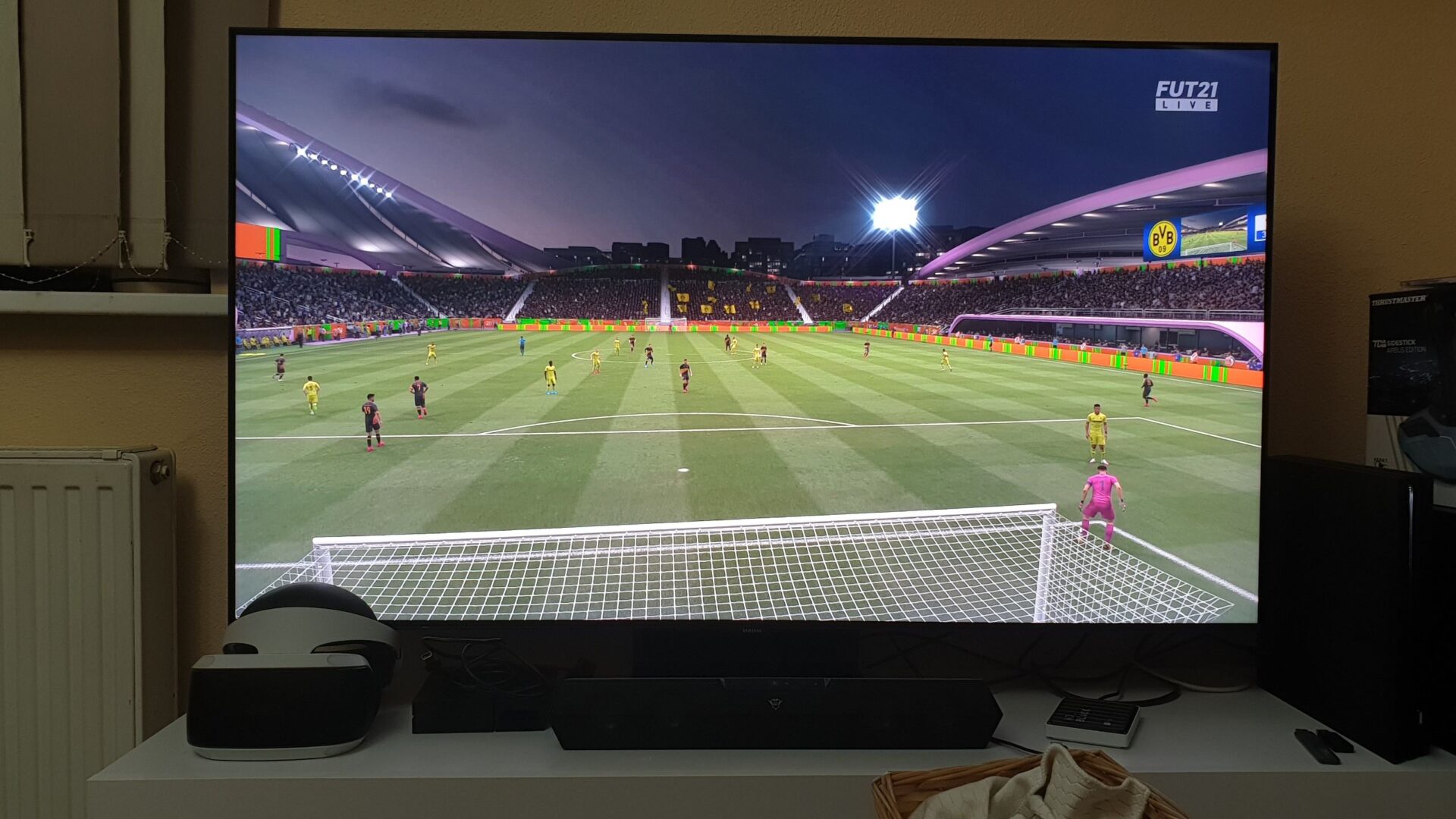 Na Samsungu Q90T zagrałem w kilka nowych gier. Jedną z najważniejszych premier ostatnich dni jest oczywiście FIFA 21, która niestety doczekała się tylko skromnych zmian w rozgrywce. W oprawie graficznej również ciężko doszukiwać się większych ulepszeń względem ubiegłorocznej edycji. Oczywiście nadal łatwo rozpoznamy czołowych piłkarzy, będziemy cieszyć się piękną murawą, oślepiającymi jupiterami, czy płynną rozgrywką bez żądnego smużenia piłki, ale na prawdziwy pokaz fajerwerków, jak ray tracing, realistyczne twarze i animacje wraz z trybunami będziemy musieli poczekać dopiero do premiery konsol nowej generacji.