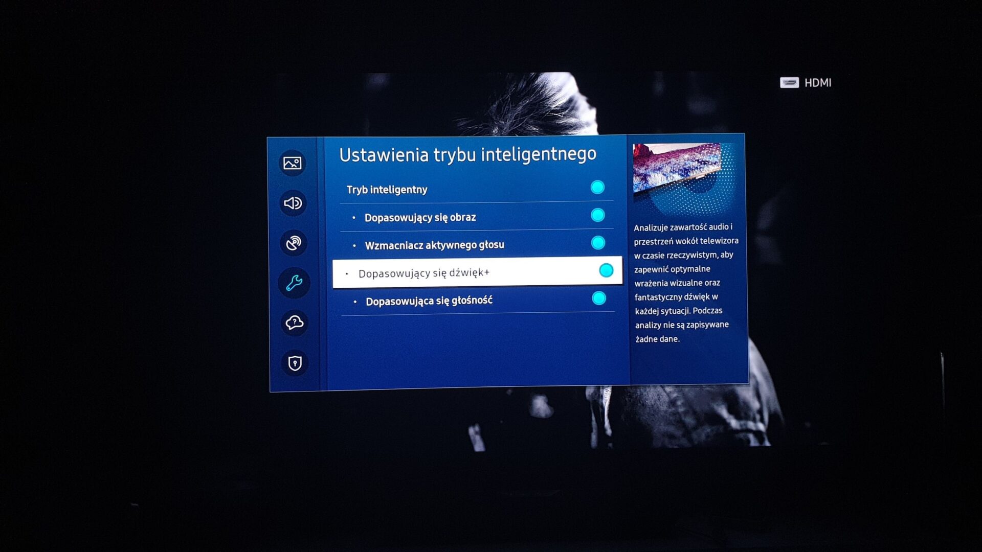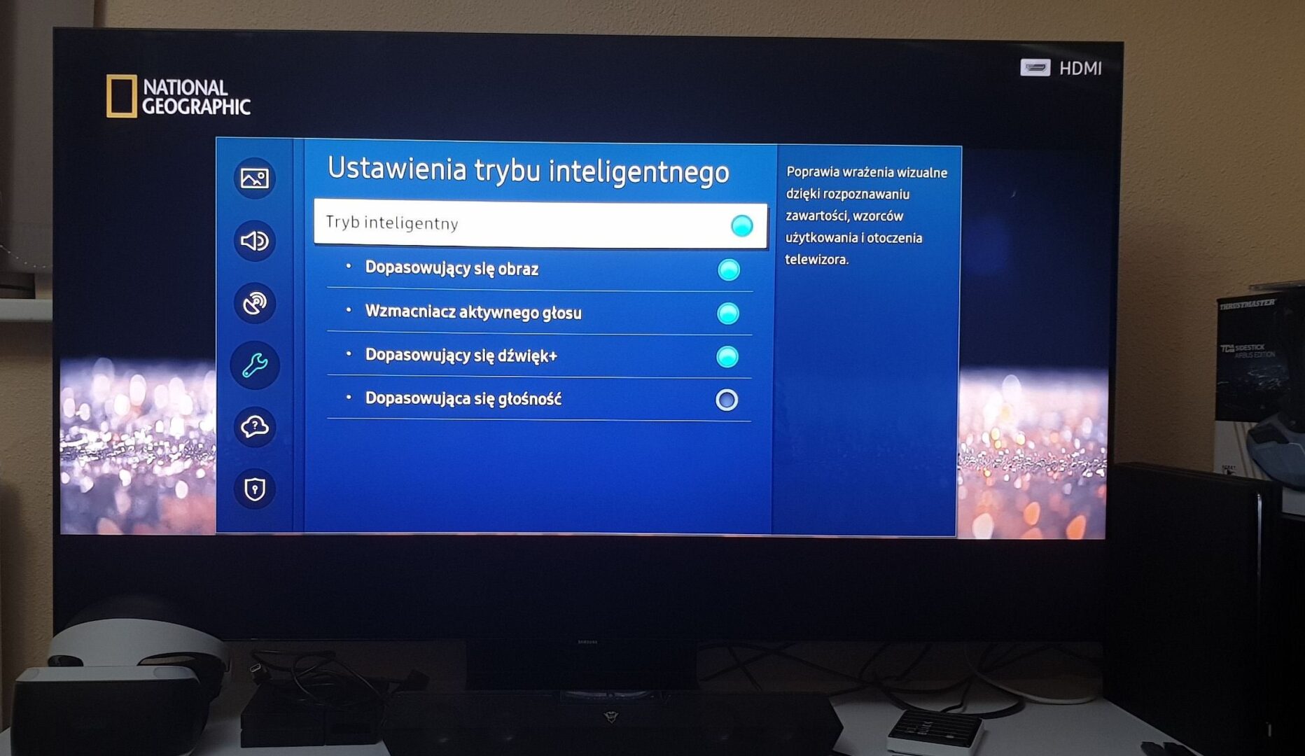 Wszystkie wyżej wymienione przeze mnie funkcje dostępne są w Trybie Inteligentnym, w którym telewizor za pomocą procesora Quantum 4K automatycznie dopasowuje poziom jasności ekranu i emisję dźwięku do warunków w pomieszczeniu dla oglądanej treści.