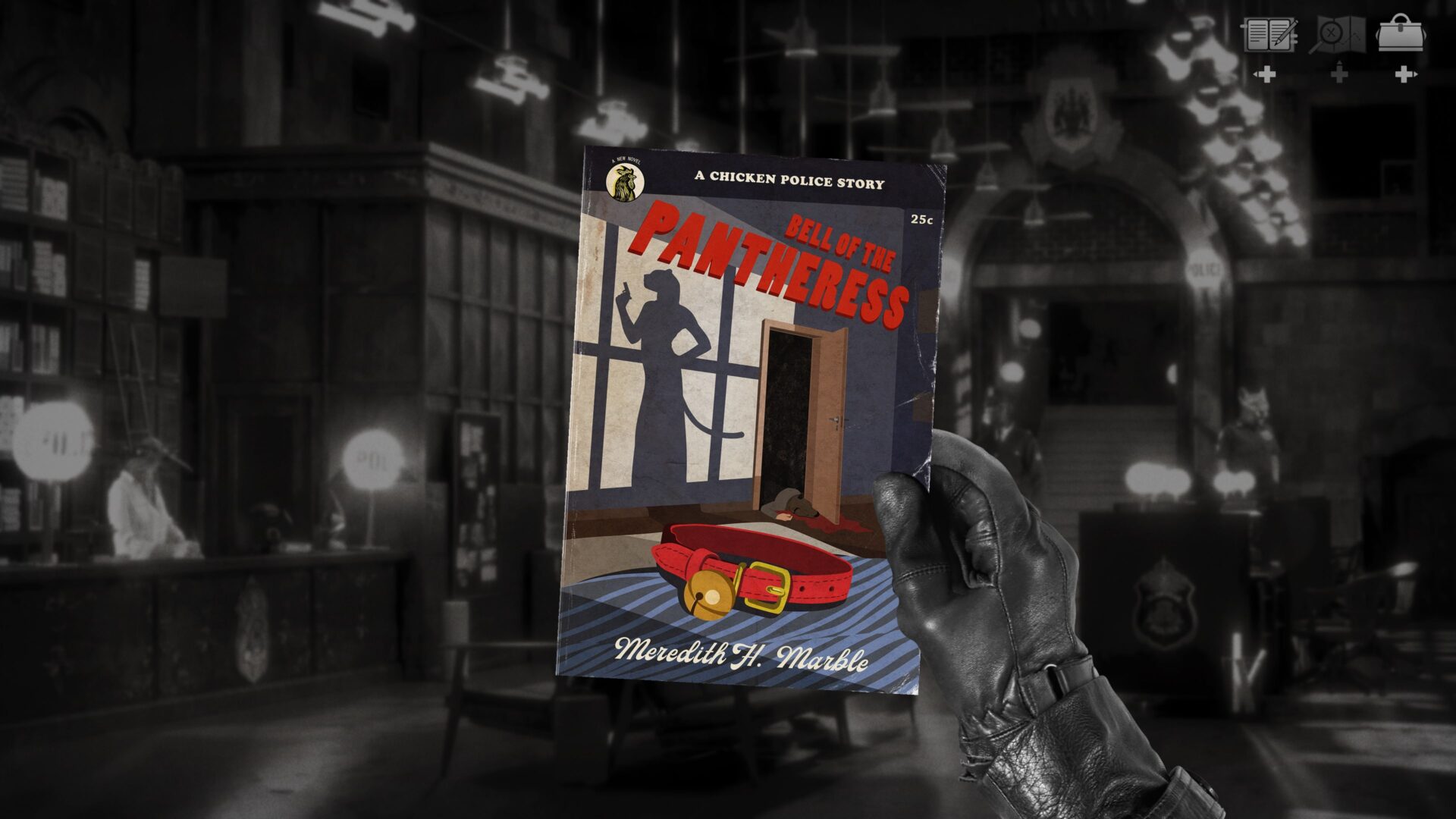 Chicken Police to detektywistyczna historia utrzymana w stylu filmów Noir. Czerń i biel towarzyszyć nam będą przez całą historię, choć zdarzą się też elementy zabarwione czerwienią lub żółcią. Muzyka, mocno jazzowa, idealnie pasuje do tego, co wyobrażacie sobie, czytając taki opis. Jak gra się w taką klikankę?