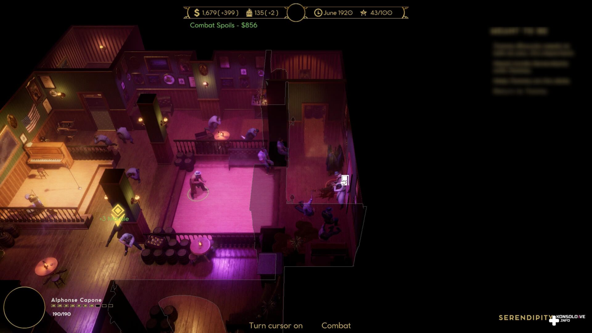 Walki będziemy prowadzili, starając się obronić swoje posiadłości, lub zdobyć nowe. Trzeba bowiem wiedzieć, że jedną z najważniejszych cech recenzowanego tytułu jest ciągłe dążenie do ekspansji i zwiększania naszych wpływów w mieście. Będziemy w tym celu przejmować różnego rodzaju interesy, które są pod kontrolą konkurencyjnych organizacji przestępczych. Może to być bar, hotel, burdel, browar lub kasyna. Każdy z tych typów miejsc charakteryzuje się inną ceną wykupienia i preferowanym rodzajem alkoholu. Tu dochodzimy do dwóch walut, na jakich opiera się gra. Pierwszy to oczywiście pieniądze – dostajemy je za wykonywanie misji, ale też w ramach cotygodniowego przypływu z posiadanych biznesów. Możemy też sprzedawać odnalezione we wrogich placówkach przedmioty użytkowe i elementy wyposażenia naszych gangsterów. Może zdarzyć się tak, że przejęliśmy placówkę, ale nie mamy pieniędzy, aby ją odpowiednio dostosować do naszych preferencji, a tym samym wykupić. Możemy jednak na przykład zburzyć miejsce, aby na kilka miesięcy konkurencja nie mogła niczego tu postawić i zwiększyć sobie wpływów na podstawie tego budynku. Empire of Sin bardzo silnie promuje myślenie i jest bardzo dobrą nowoczesną strategią.