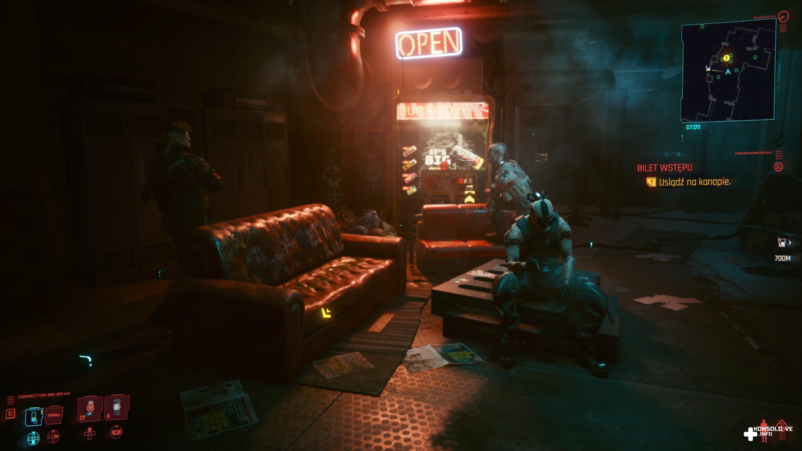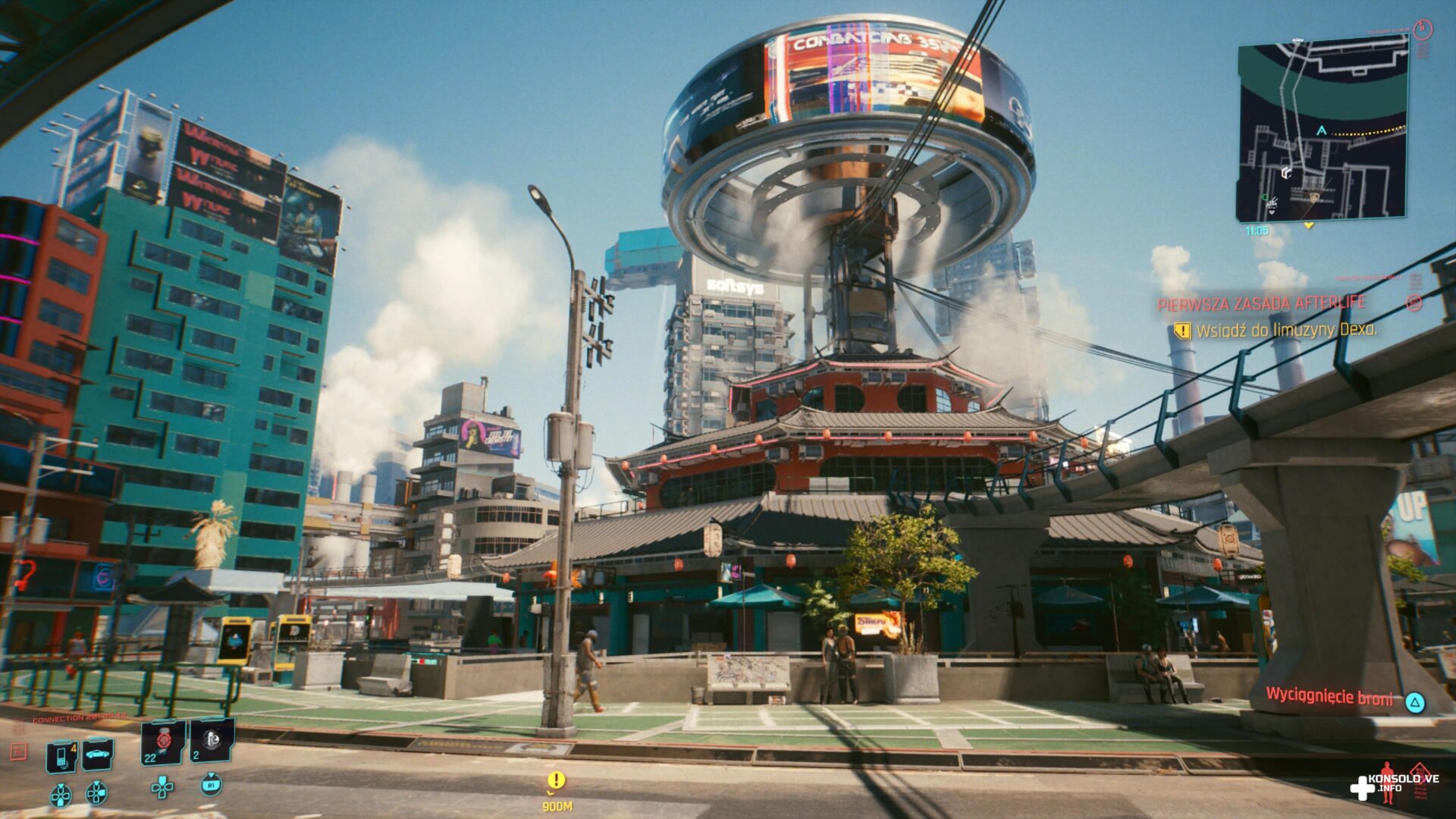 Cyberpunk 2077 bynajmniej nie jest produkcją bez wad. Dość często można spotkać się z dziwacznym rag dollem pokonanych postaci, czy problematycznym podnoszeniem wyposażenia znajdowanego w świecie gry. Na podstawowej wersji konsoli PS4 nie ma też mowy o pełnej płynności – wystarczy udać się do śródmieścia, aby musieć borykać się z bardzo odczuwalnymi spadkami płynności. Nie jestem w stanie zmierzyć dokładnej wartości FPS, ale wydaje mi się na oko, że były one nierzadko w okolicy zaledwie 20 klatek. Aktualizacja do wersji 1.04 poprawiła nieco tę kwestię, ale mimo wszystko spadki FPS są na porządku dziennym na siedmioletniej konsoli Sony. Produkcja cierpi również na dość długich czasach ładowania – wczytanie ostatniego zapisu z menu głównego zajmuje ponad minutę. O niebo lepiej jest natomiast na PS5 – tu animacje są stabilne i wartość ich płynności oscyluje zawsze wokół 60 klatek na sekundę, a kontynuowanie rozgrywki wymaga czekania zaledwie 14 sekund. Nie sposób też nie zauważyć wywalania gry do głównego menu konsoli – zarówno na PS5, jak i na PS4.