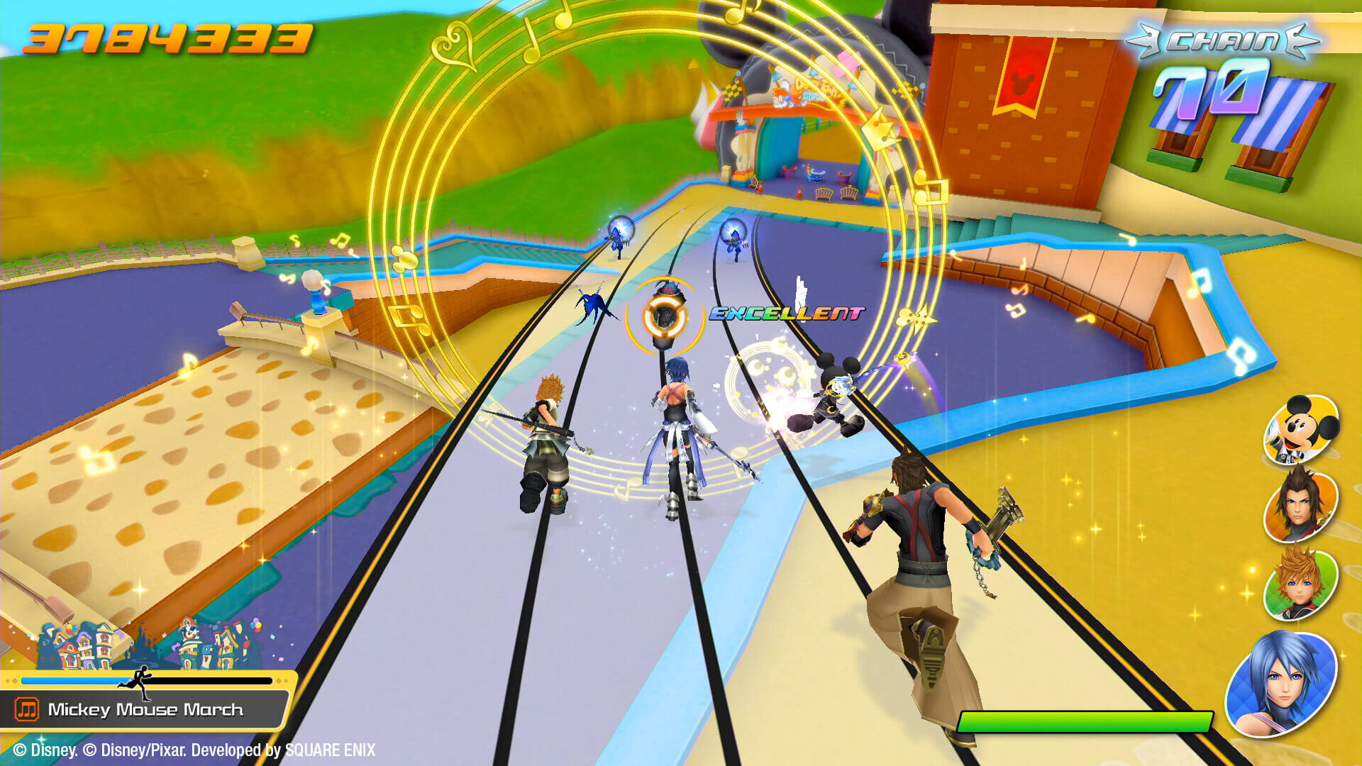 Kingdom Hearts to długoletnia seria gier z gatunku RPG akcji. Walkę toczymy w czasie rzeczywistym, wbijamy kolejne poziomy doświadczenia, używamy magii, a to wszystko dzieje się w kolorowych światach znanych z animacji Disney’a. Gdzie znajdziemy tam miejsce na produkcje rytmiczną?