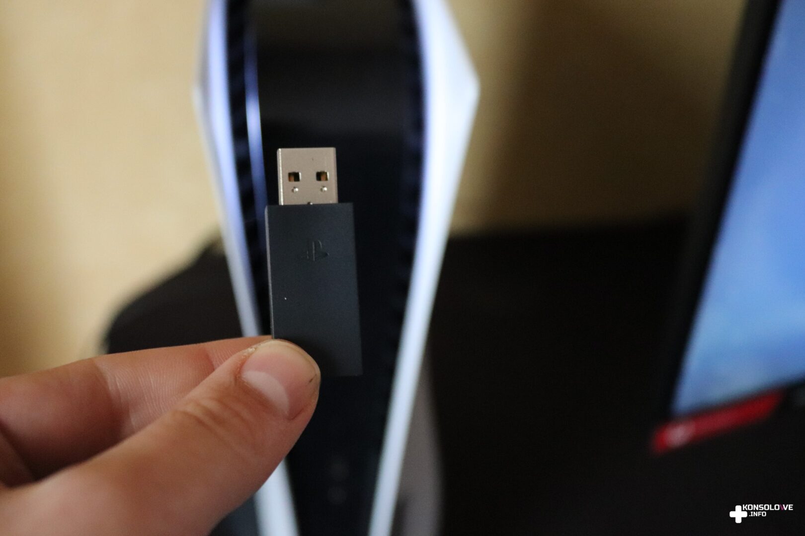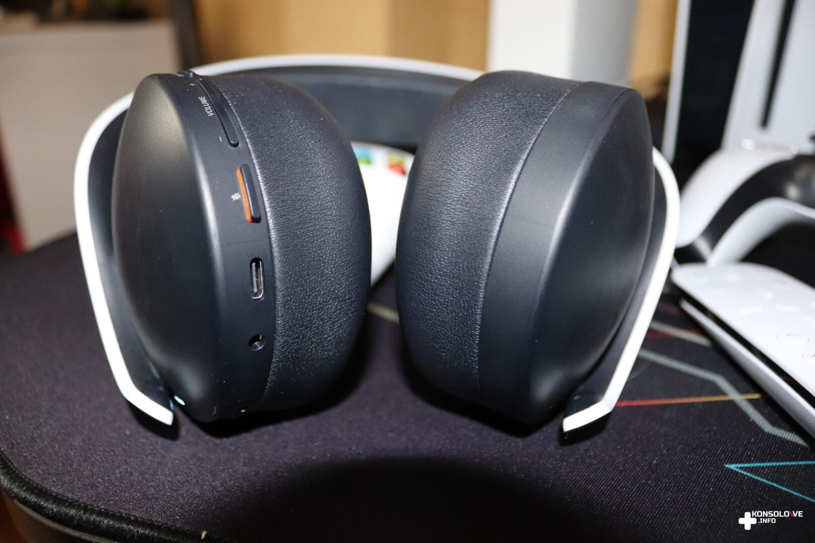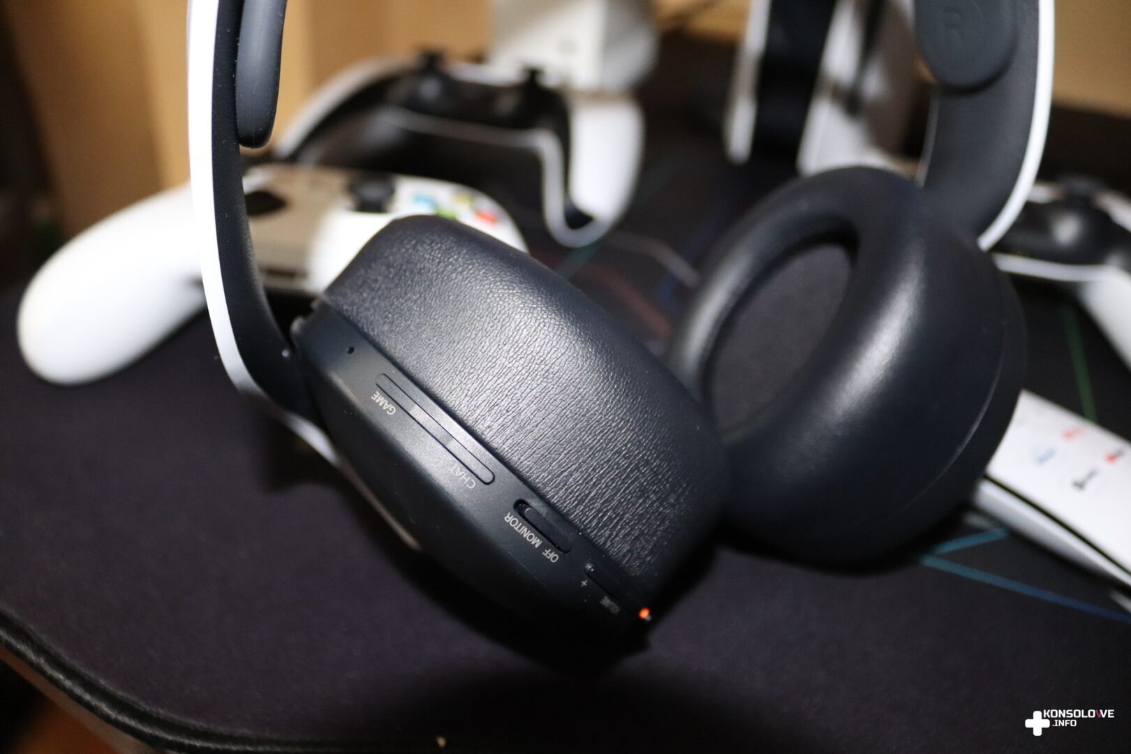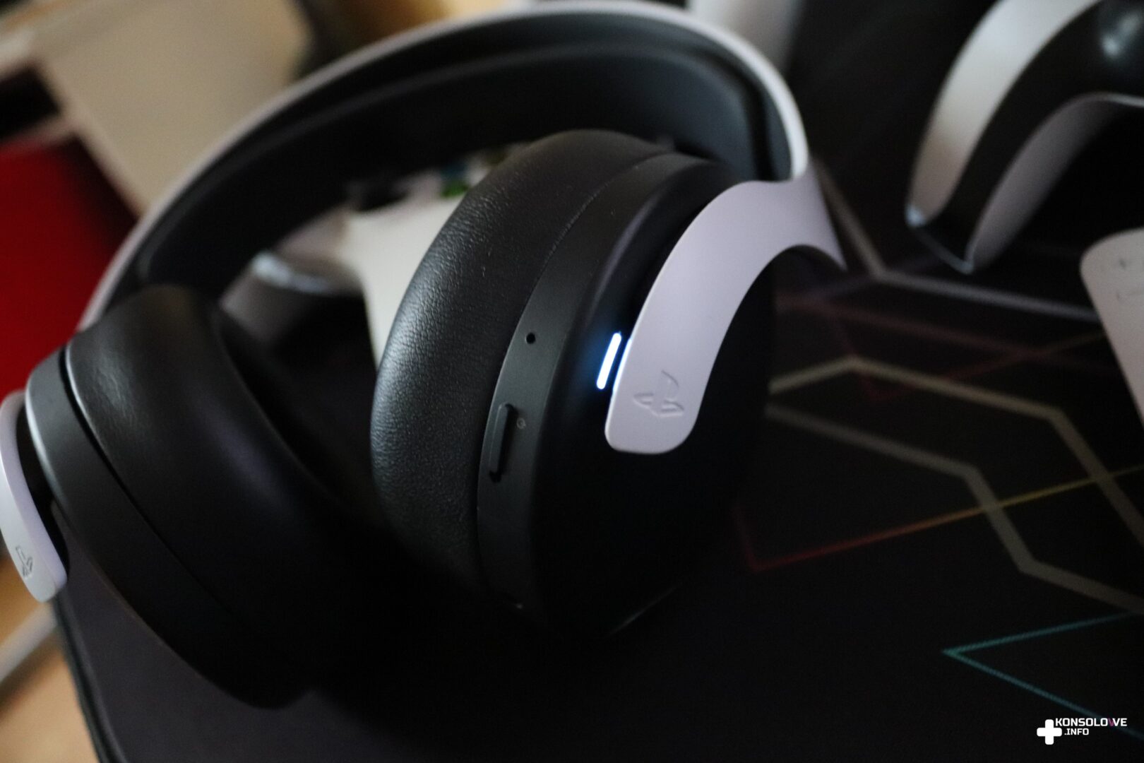 Po wyjęciu z opakowania całej wymienionej wyżej zawartości wystarczy podłączyć odbiornik USB do konsoli (lub komputera), włączyć słuchawki i voilà – sprzęt jest gotowy do pracy. Sam adapter jest niewielki, ale mimo tego bardzo zdziwiłem się wymaganiem go do działania. W XXI wieku spodziewałem się raczej pełnej bezprzewodowej łączności realizowanej z wykorzystaniem modułu Bluetooth. Pozostając jeszcze przy podłączaniu, postanowiłem sprawdzić testowane słuchawki z konsolą konkurencji – Xbox Series S. Pomyślałem, że znalazłyby się może osoby, do których przemówiłaby kolorystyka Pulse 3D i które chciałby mieć biało-czarny zestaw słuchawkowy pasujący do takiego samego wariantu konsoli. Niestety, Xbox nie umożliwia korzystania z nielicencjonowanych akcesoriów, a więc nie mogłem korzystać ze sprzętu Sony. Tak przynajmniej wydawało się dopóki nie podłączyłem ich do pada Microsoftu za pomocą kabla mini-jack. Okazuje się bowiem, że Pulse 3D posiadają gniazdo mini-jack, a więc możemy z nich korzystać z niemal każdym urządzeniem. Po takim obejściu problemu mogłem używać testowanych słuchawek, grając na Xbox Series S, ale oczywiście dostępne funkcje były jedynie podstawowe – polegały na odtwarzaniu dźwięku. Wróciłem więc do głównej rodziny tego akcesorium – konsoli PlayStation 5, na której mogłem wykorzystywać wszystkie opcje oferowane przez Pulse 3D.